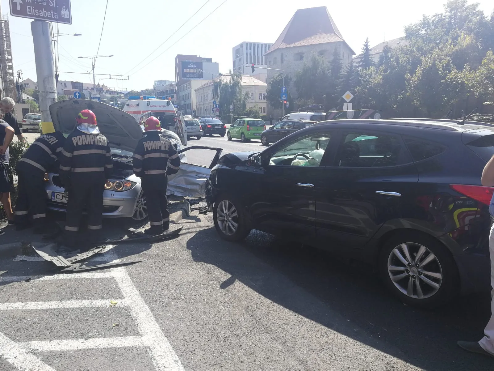 Accident grav în Piața Cipariu, intre un BMW și un SUV. Doi pietoni au fost răniți FOTO