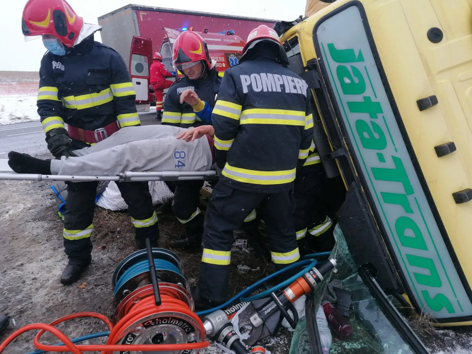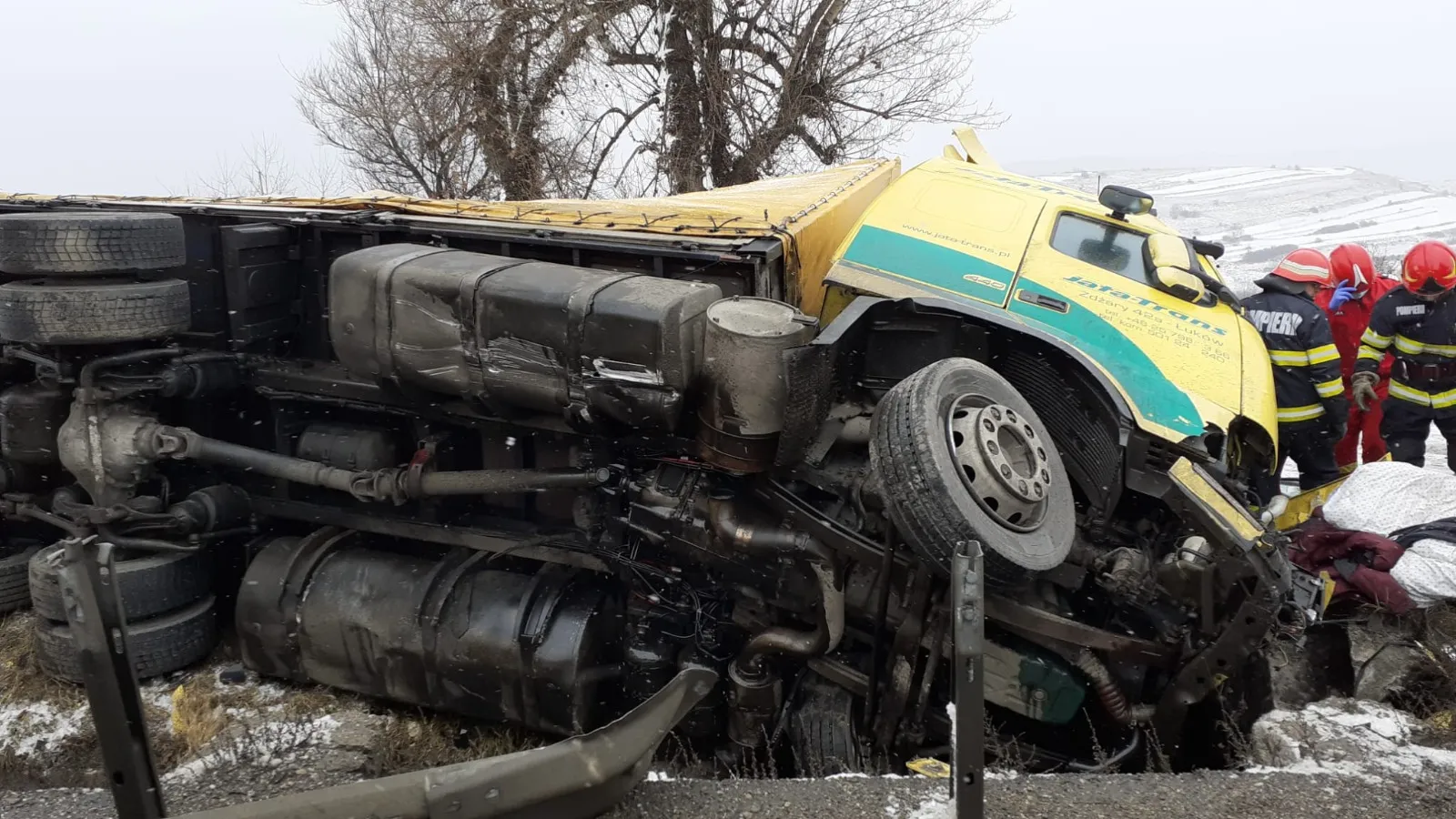 Poliția Cluj precizează că șoferul unui ”ansamblu de vehicule, în vârstă de 36 de ani, care se deplasa dinspre municipiul Oradea înspre Cluj-Napoca ar fi pierdut controlul asupra direcției de deplasare, vehicului părăsind partea carosabilă, ulterior răsturnându-se.