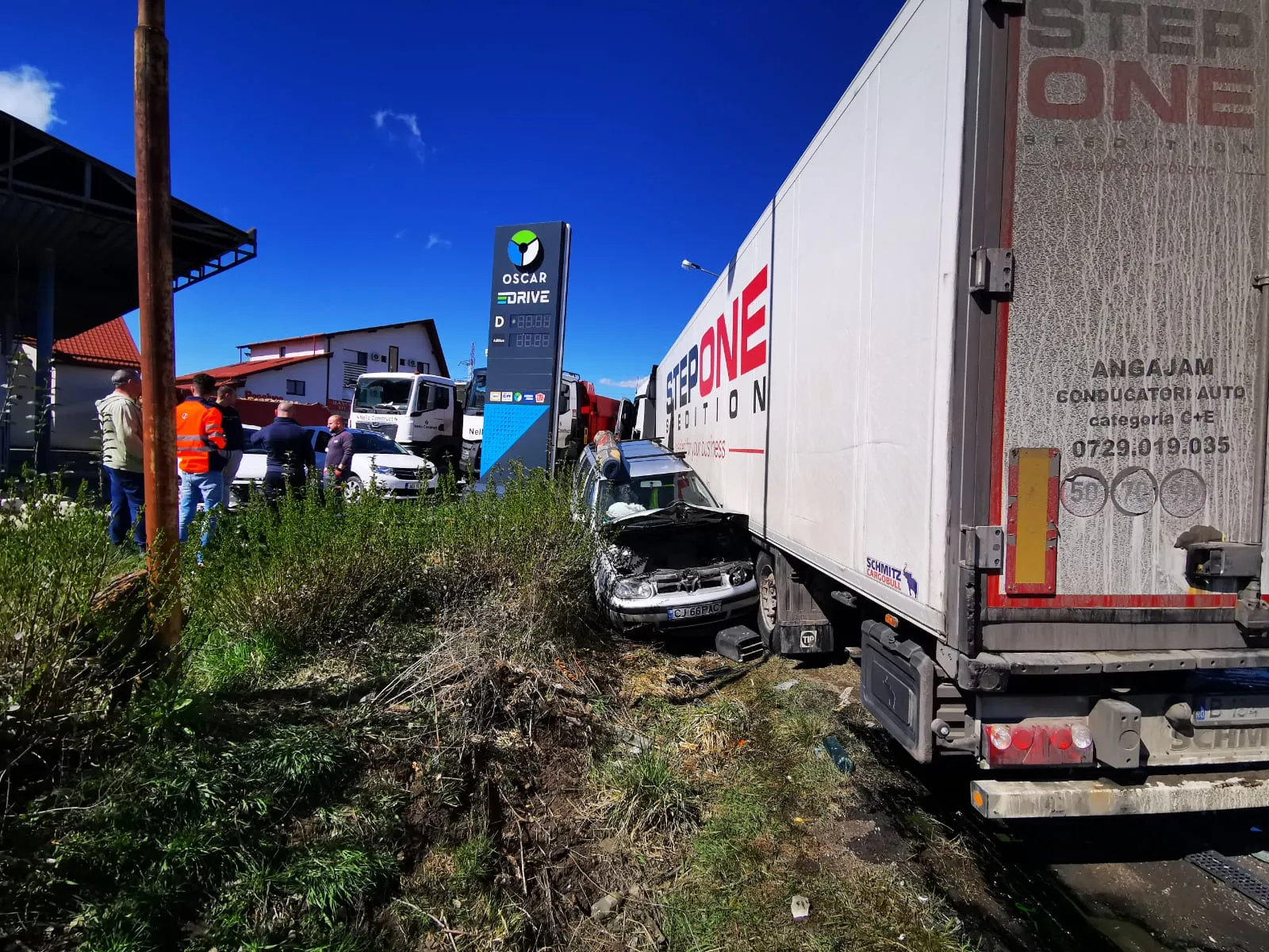 În urma impactului, ansamblul de vehicule condus de bărbat a fost proiectat într-un autoturism aflat în intersecție. Totodată, un element din caroseria unui camion a ricoșat într-un alt autoturism oprit în intersecție.