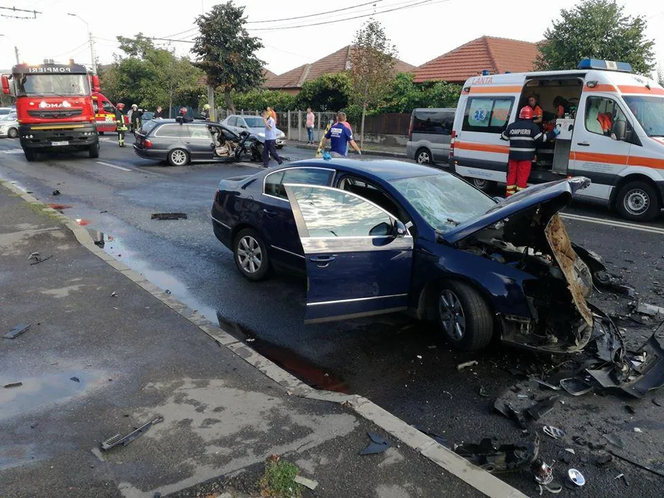 Un grav accident de circulație s-a produs duminică dimineața, în jurul orei 9.00, pe strada Traian Vuia, chiar lângă Ambient.