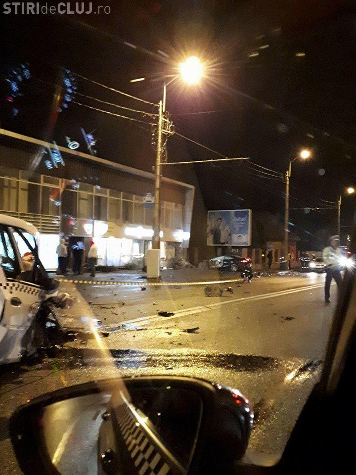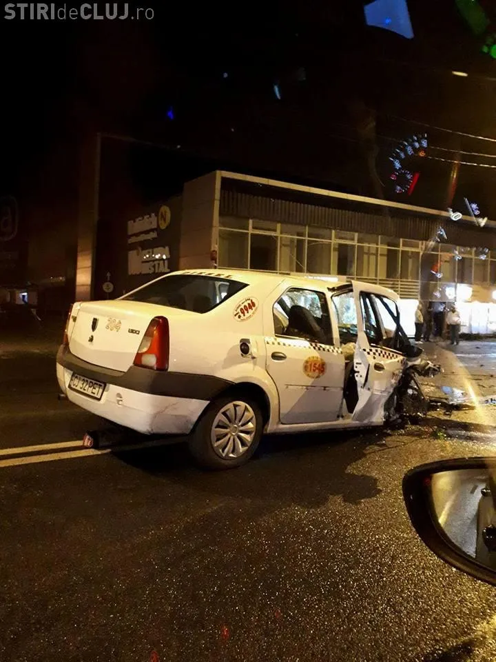 Prima mașină a ricoșat în urm accidentului și a lovit peretele unei clădiri, iar apoi un gard. În urma accidentului a fost rănit tânărul care circula regulamentar (n.red. șoferul taximetrului)”, precizează Poliția Cluj.