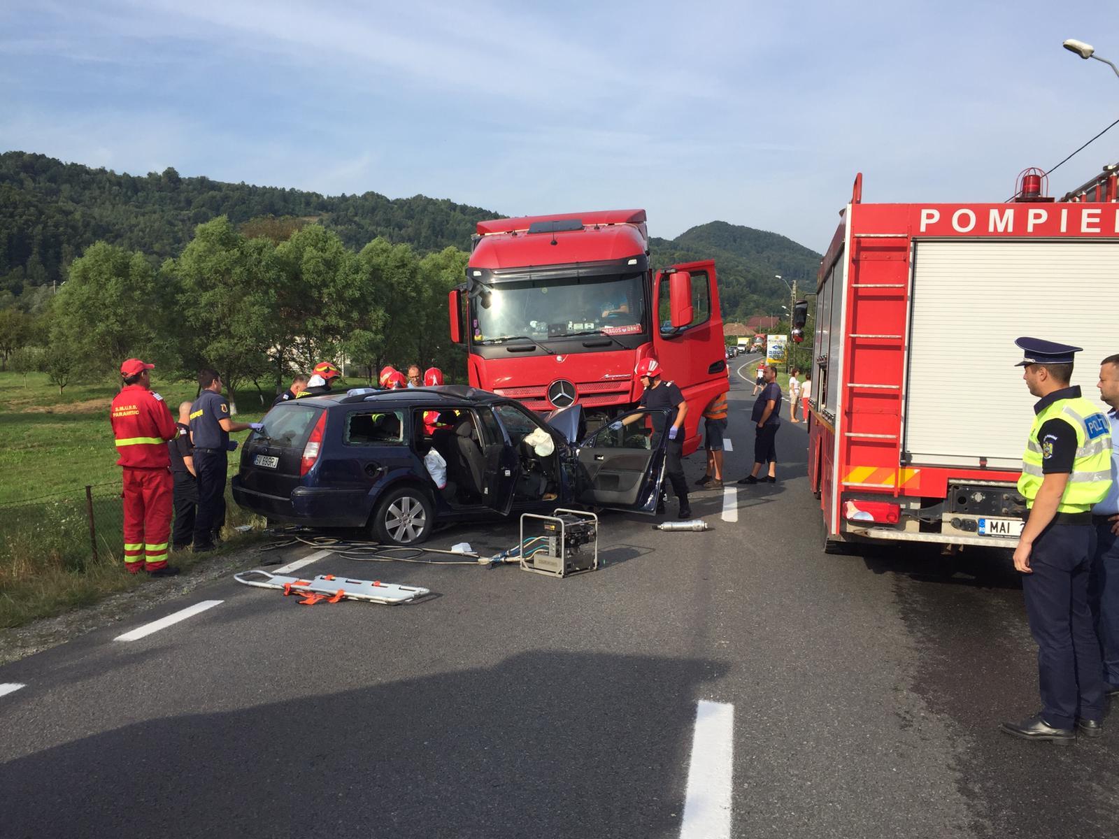 Accidentul s-a soldat cu doi răniți grav, ambii din autoturism, soferul de 53 de ani și un pasager.