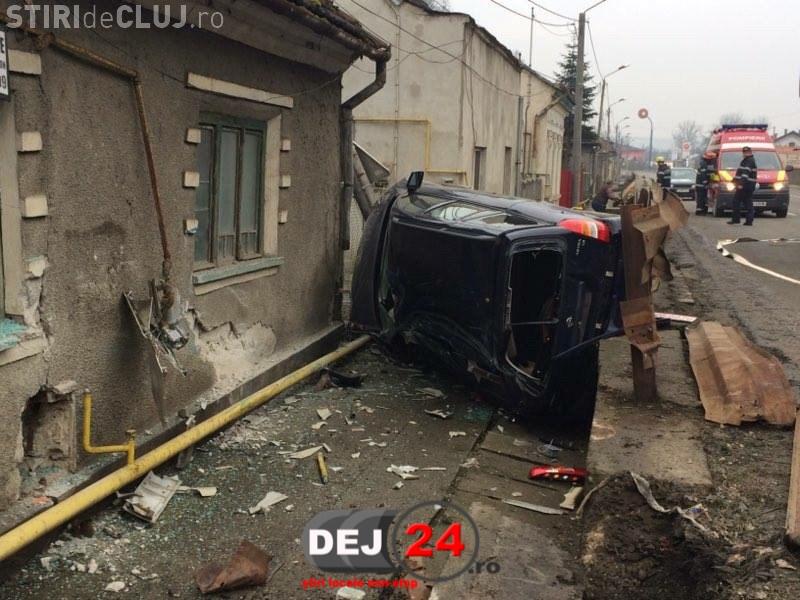 Accident GRAV la Cluj! A zburat cu mașina într-o casă - VIDEO