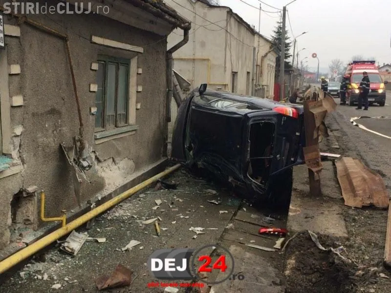 Șoferul unui autoturism marca Opel, care circula dinspre Cluj-Napoca înspre Dej, a lovit parapetul de pe celălalt sens de circulație și apoi a intrat într-o casă.