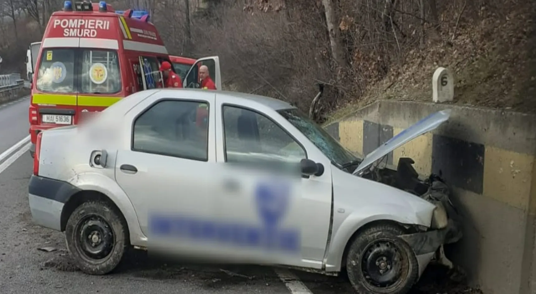Accident rutier în Bucea: Un autoturism s-a izbit de un parapet de beton
