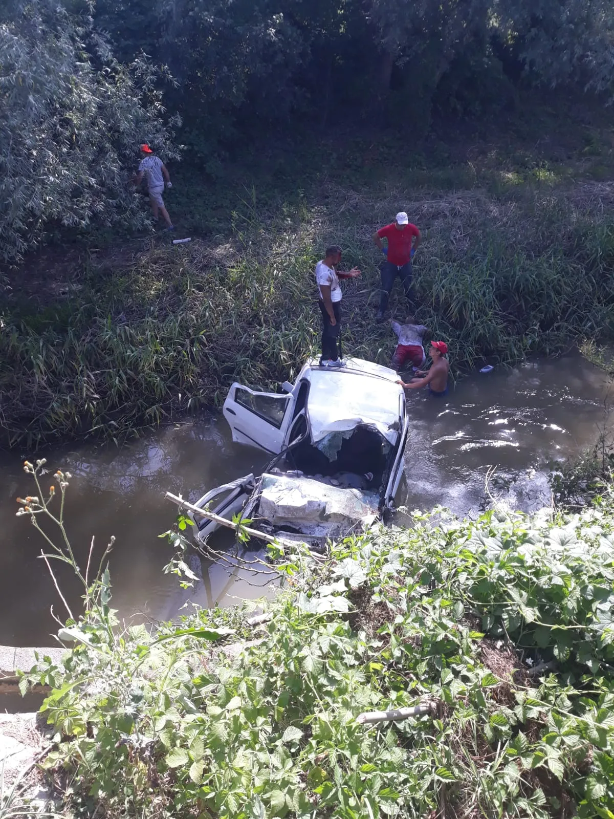 Bărbatul care conducea si pasagerul au fost răniți, noroc cu trecătorii pentru că altfel mureau înecați ca șobolanii.