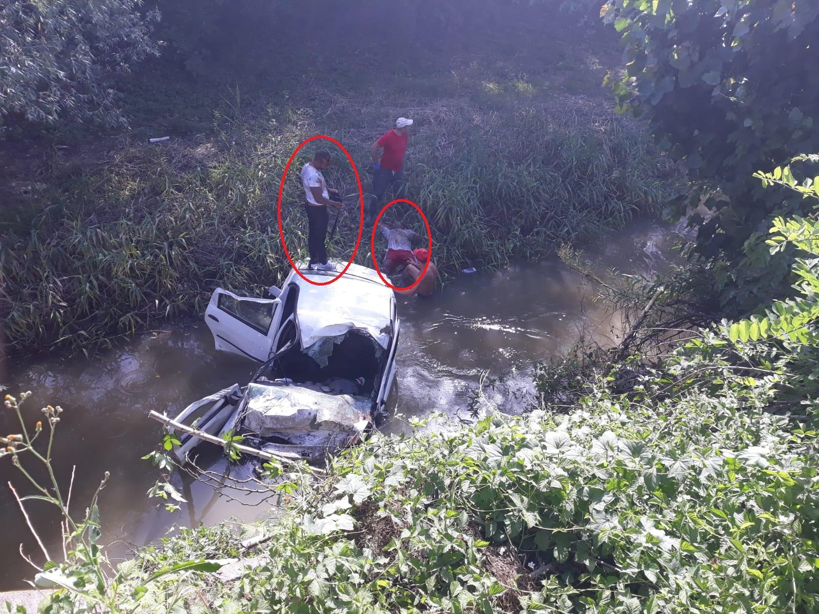 Accident GRAV la Gherla. Au plonjat într-un pârâu și au fost salvați de niște EROI. Șoferul e recidivist - FOTO