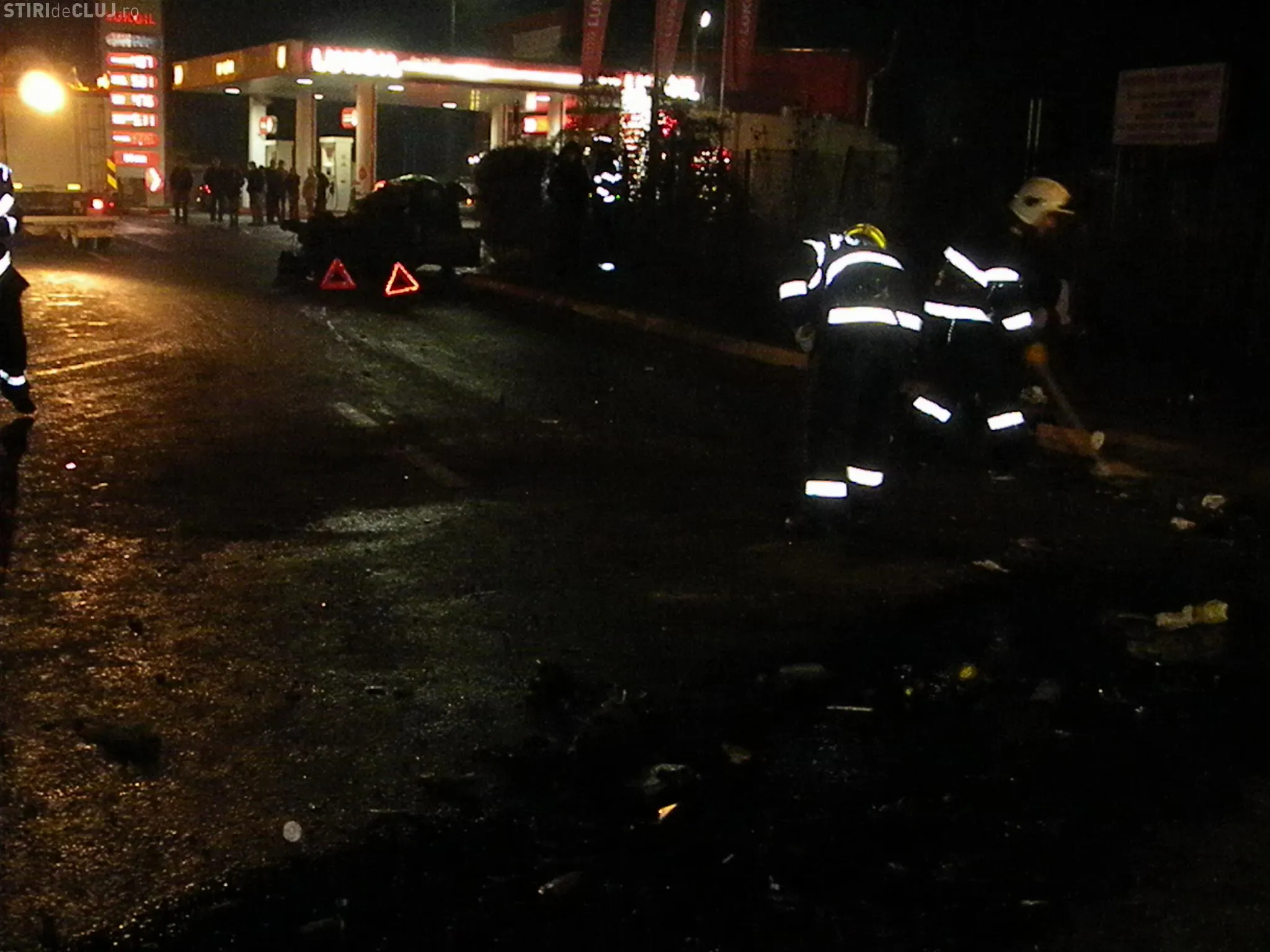 "O masina era oprita la trecerea de cale ferata si, din spate, un TIR incarcat cu 20 de tone de faianta a intrat in el. Ambele masini au fost proiectate intr-un TIR si un alt autoturism care circulau regulamentar din sens opus", a declarat purtatorul de cuvant al IPJ Cluj, Anca Purdea.