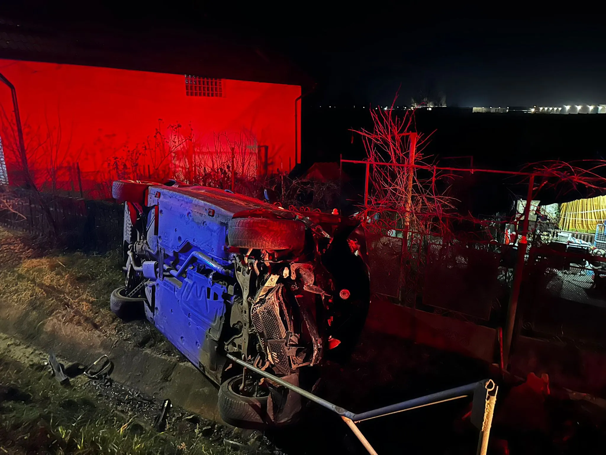 Accident grav la Mănăstirea! O mașină s-a răstunat spectaculos. Șoferul abia umbla de beat ce era - FOTO