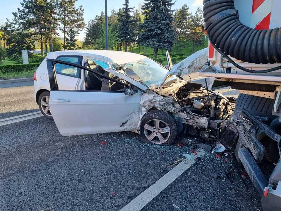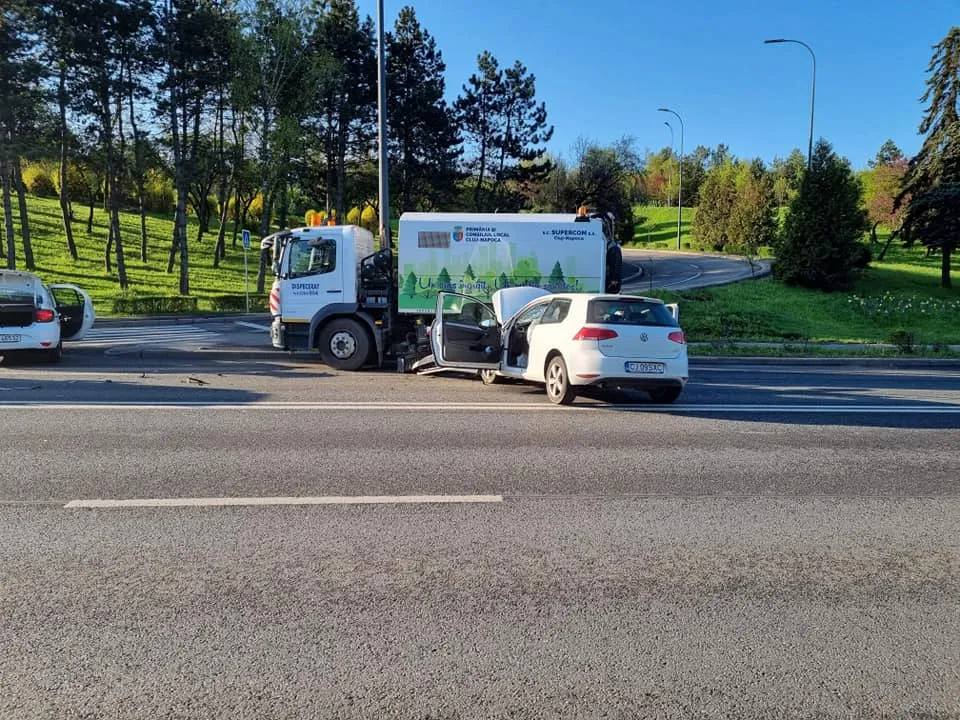 Este neclar cum s-a produs acest accident, dar cel mai probabil autoturismul nu a respectat distanța față de mașina de salubritate stradală.