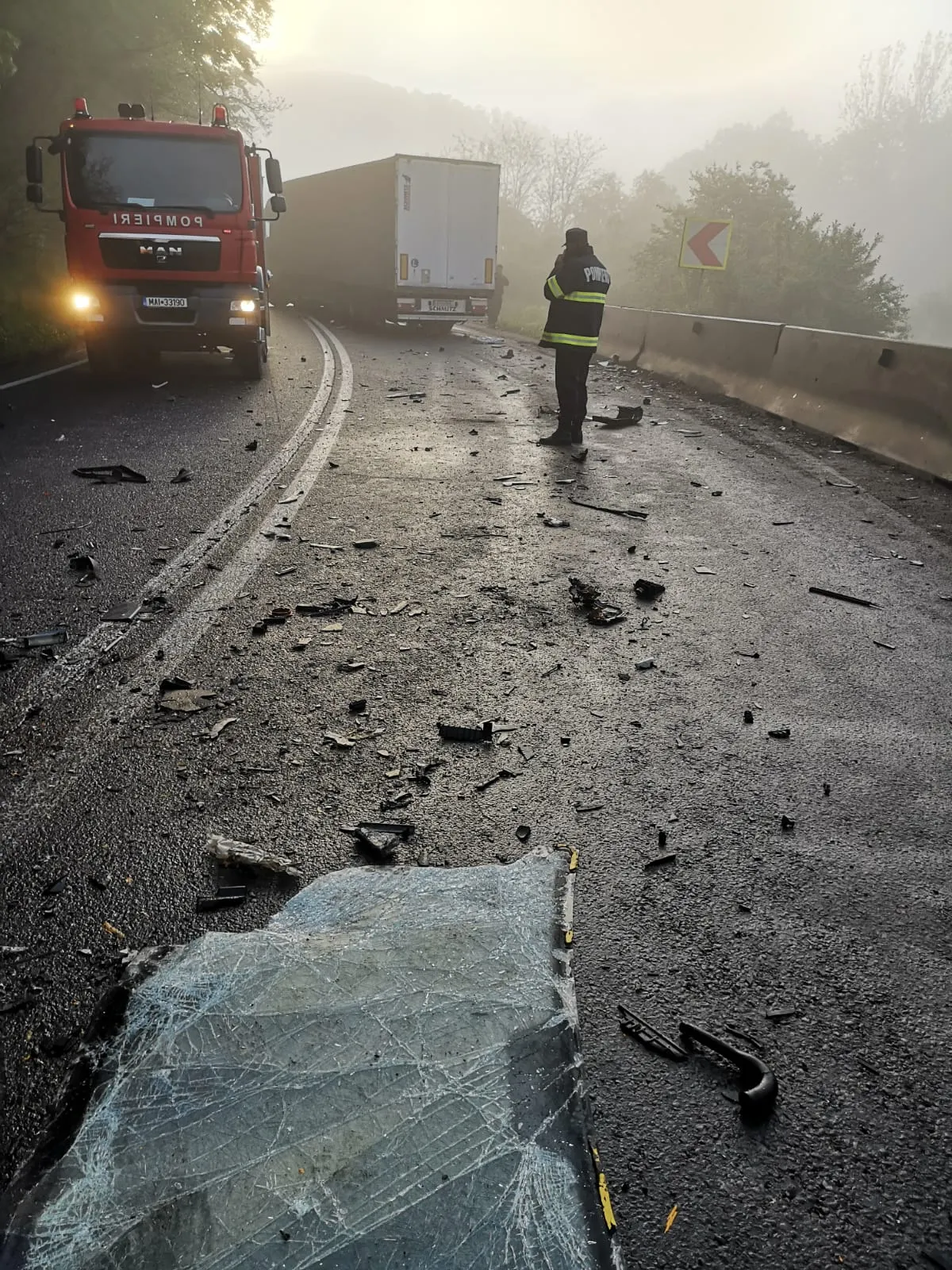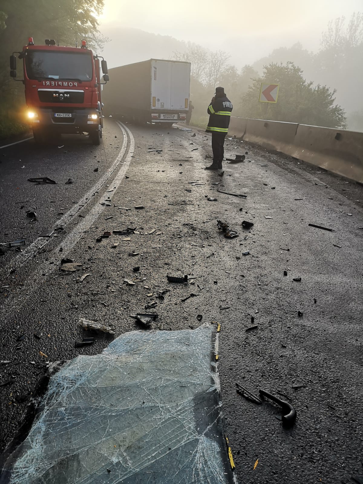 Un accident rutier s-a produs vineri dimineața, pe DN 1, pe raza localității Morlaca, comuna Poieni