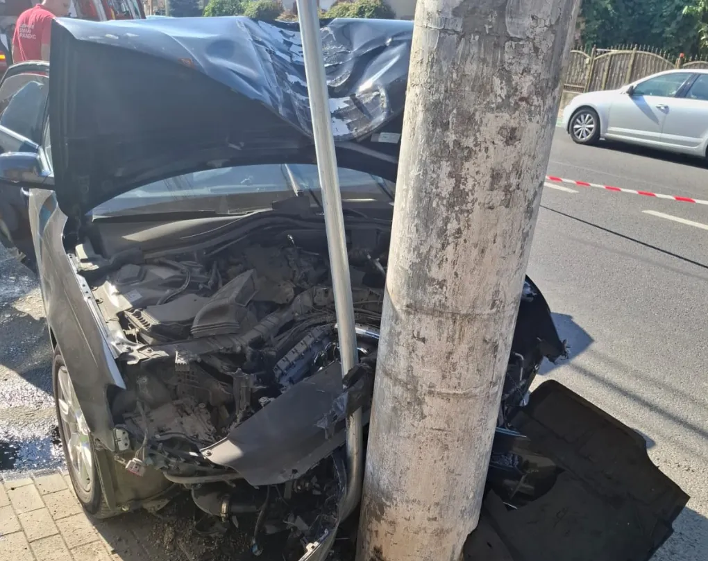 Un clujean a intrat cu mașina într-un stâlp pe strada Ștefan cel Mare din Turda. O femeie a ajuns la spital