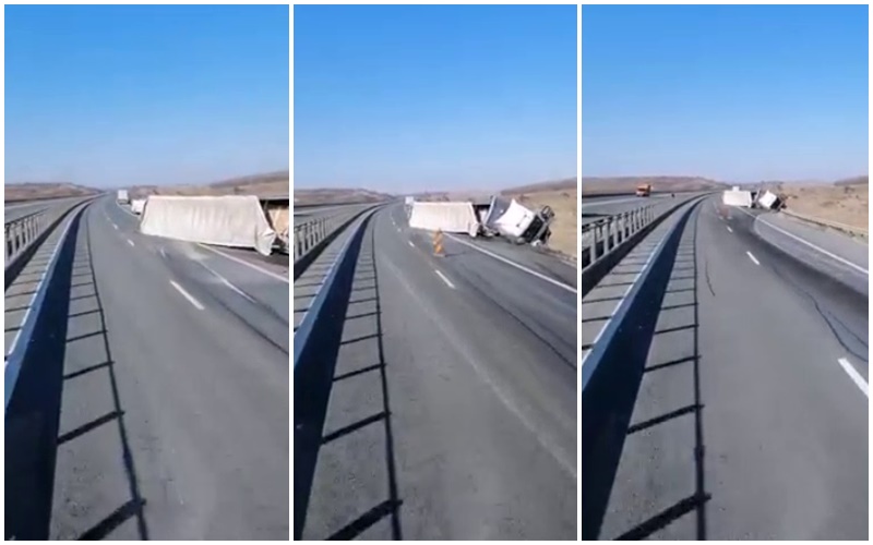 Accidentul s-a soldat numai cu pagube materiale. Un TIR s-a răsturnat, dar nu sunt victime. Poliția încearcă degajarea traficului, pentru că banda de urgență și banda unu sunt blocate.