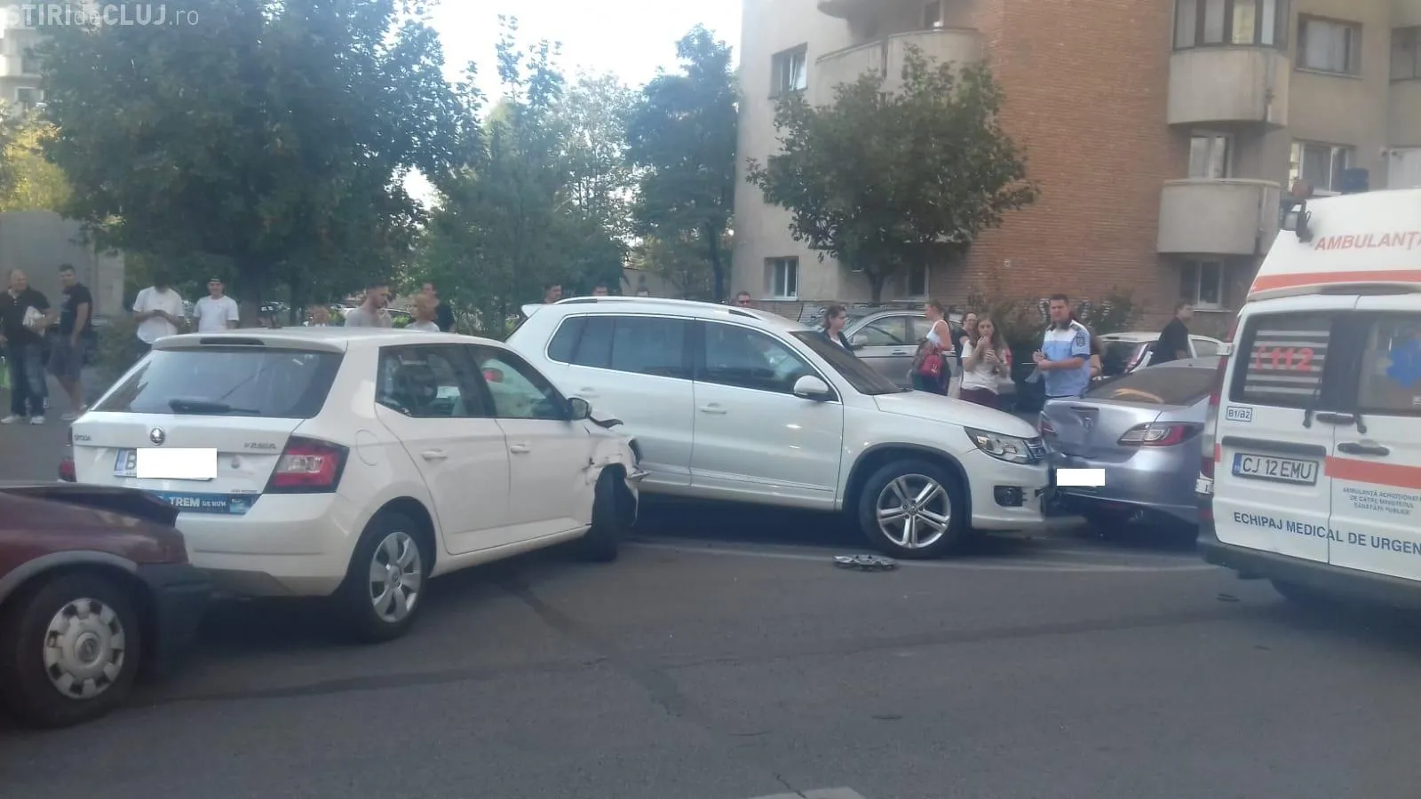 ”Două autoturisme s-au tamponat în acea zonă, iar una dintre mașini a fost proiectată în alte trei autoturisme parcate”, a precizat purtătorul de cuvânt al IPJ Cluj, Traian Morar.
