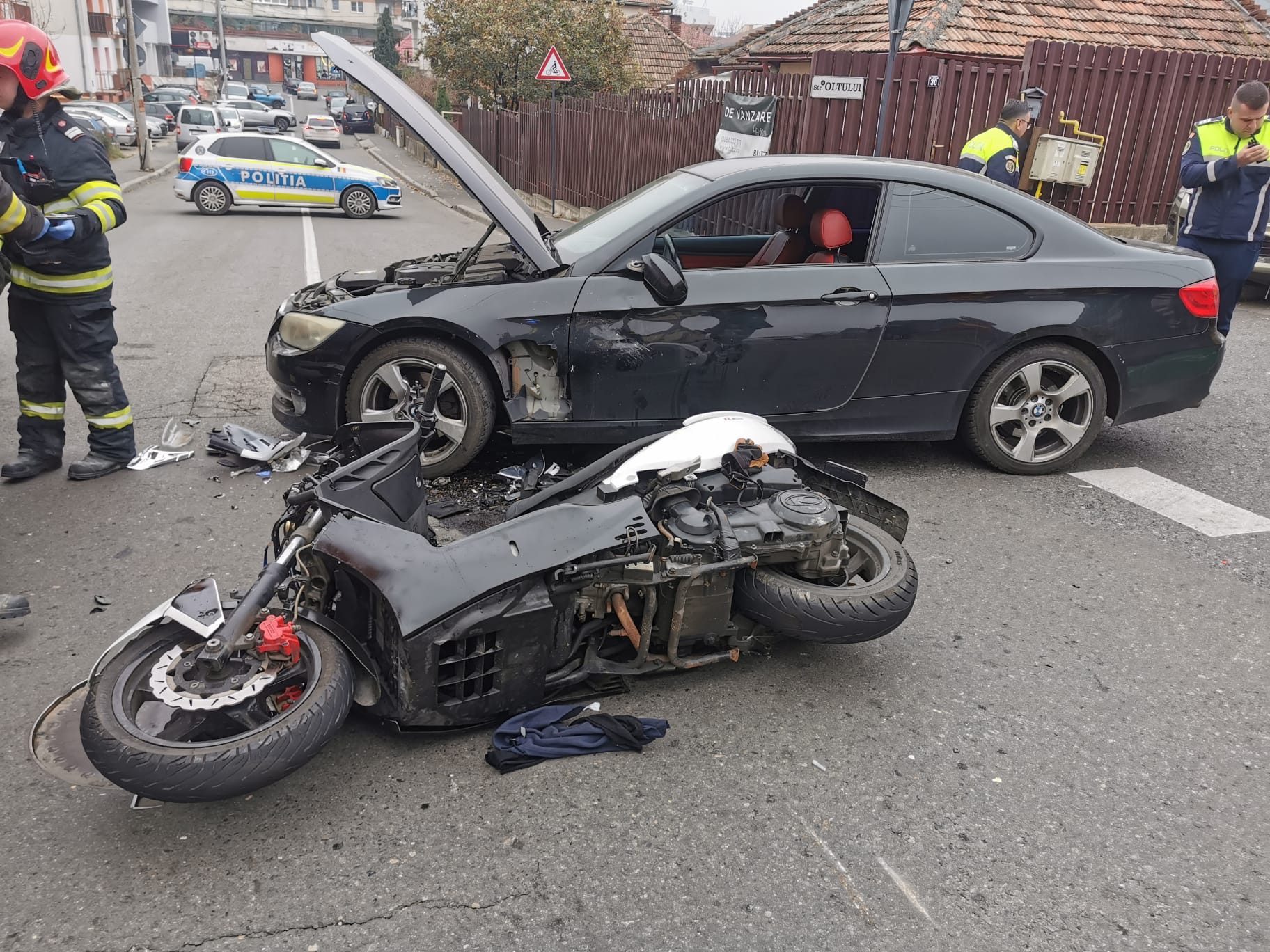 Conform primelor cercetări efectuate la fața locului, s-a constatat că o femeie, de 40 de ani, care circula cu autoturismul înspre strada Dunării, ar fi intrat în coliziune cu un motociclu, condus de un tânăr de 23 de ani.
