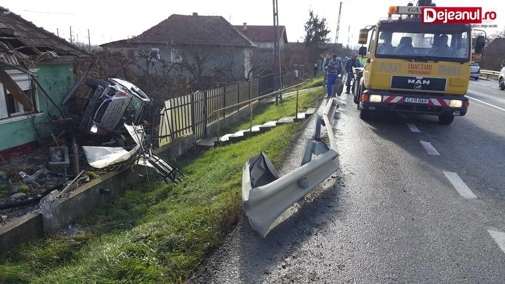 Un barbat de 46 de ani din Caseiu, aflat la volanul unui autoturism Mercedes, se indrepta spre Cluj-Napoca, iar intr-o curba soferul a pierdut controlul volanului, a intrat pe contrasens si s-a izbit de un parapet, a distrus un podet si a „zburat” printr-un gard in acoperisul unei case, potrivit dejeanul.ro.