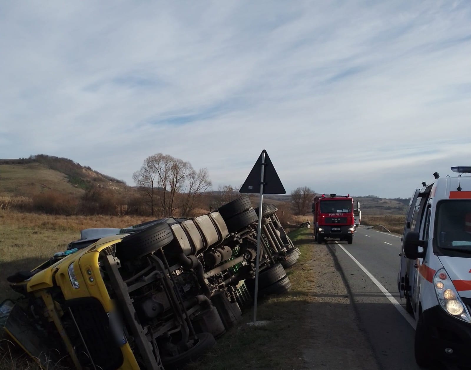 Un grav accident de circulație a avut loc luni, 11 noiembrie, pe raza localității Sânpaul din județul Cluj. Un tânăr de aproximativ 20 de ani primește îngrijiri medicale, după ce un autocamion s-a răsturnat.