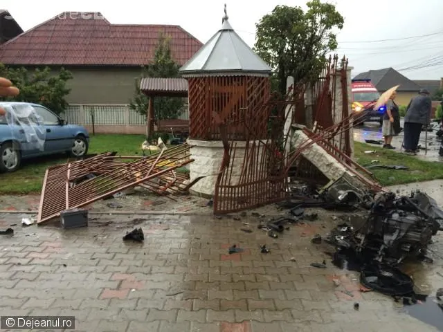 Un bărbat de 29 ani, din Dej, în timp ce conducea autovehiculul pe DN17, pe raza localităţii Cuzdrioara, judeţul Cluj, pe fondul neadaptării vitezei la condiţiile de drum (carosabil umed), a pierdut controlul direcţiei de deplasare şi a părăsit partea carosabilă, intrând în coliziune cu poarta şi gardul unui imobil.
