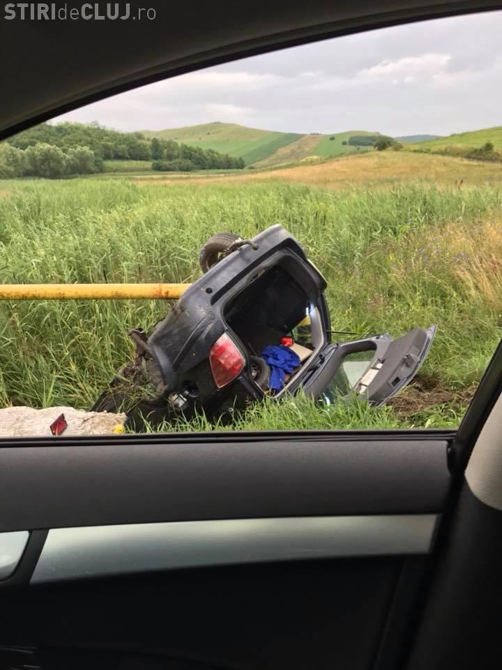 Accident în Apahida! Un șofer și-a luat ”zborul” într-o curbă - FOTO