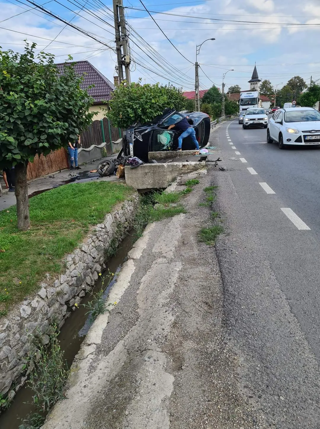 Accident în Baciu, pe strada principală - FOTO
