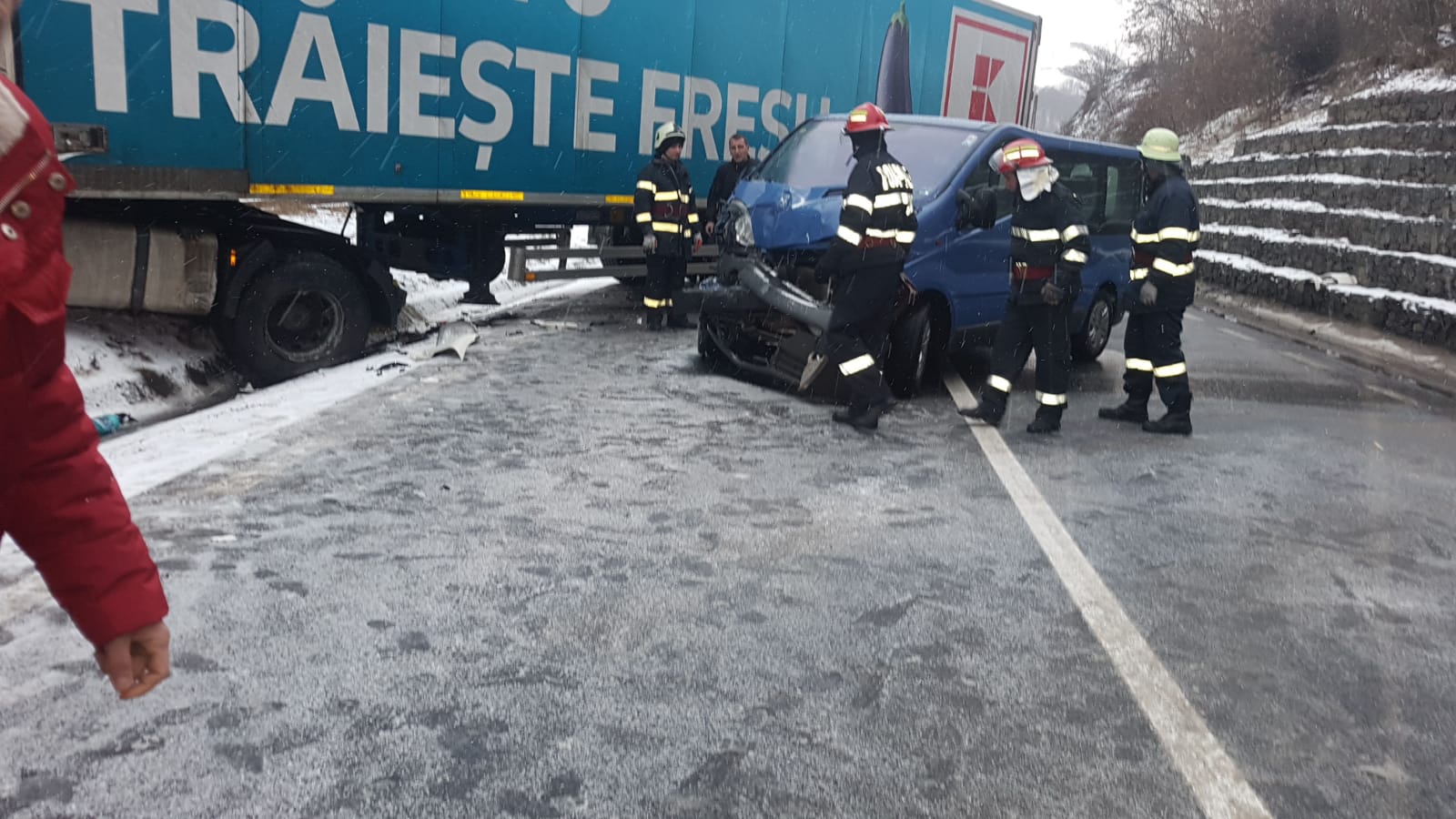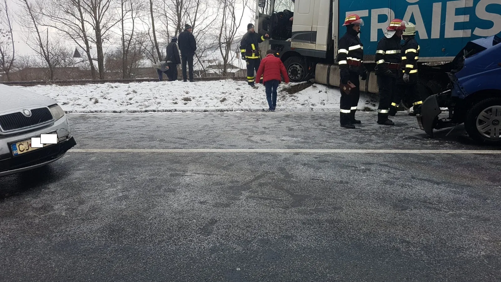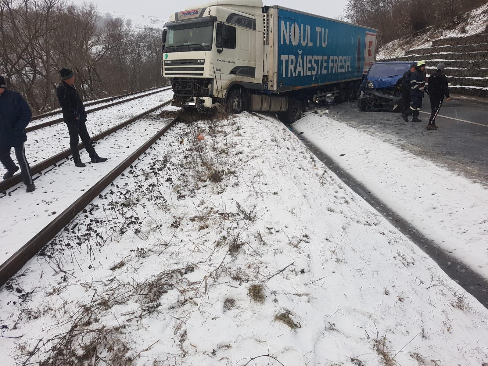 Din primele informații rezultă că au fost implicate 3 autoturisme, iar trei persoane sunt rănite. Un TIR a ieșit de pe carosabil și a ajuns pe calea ferată.