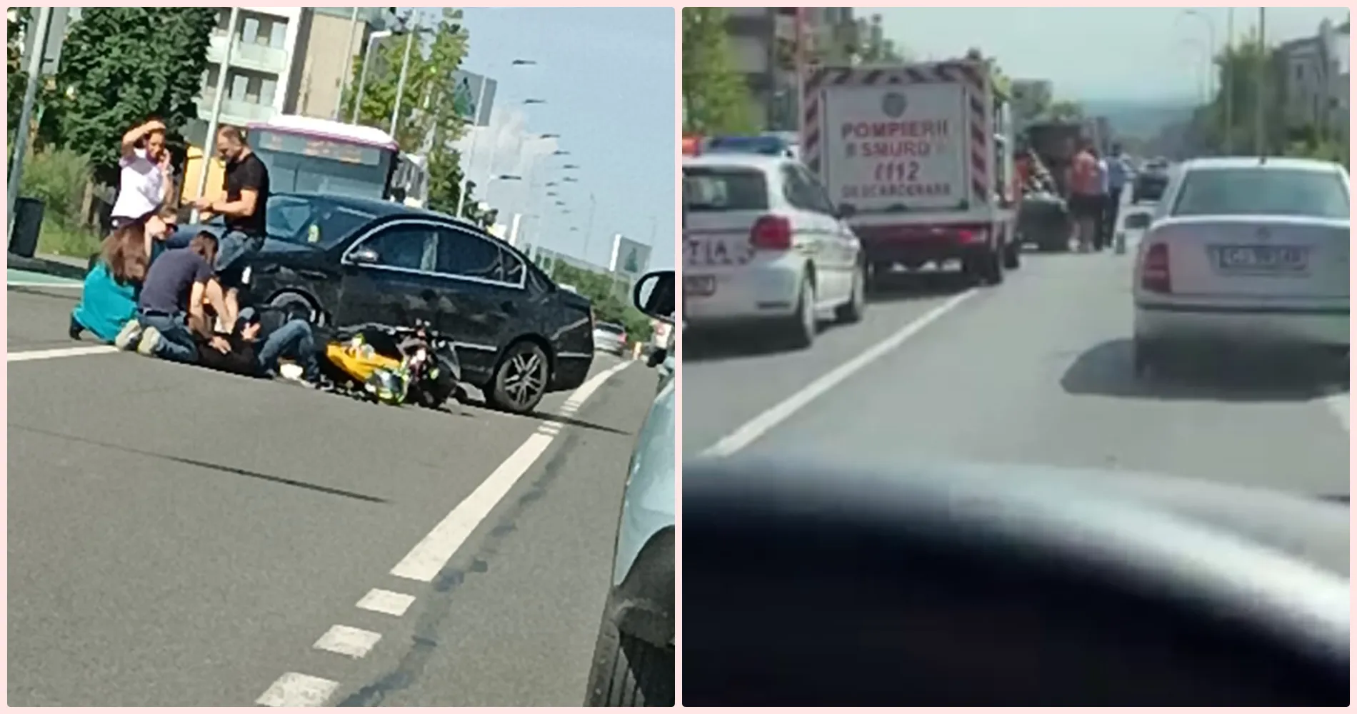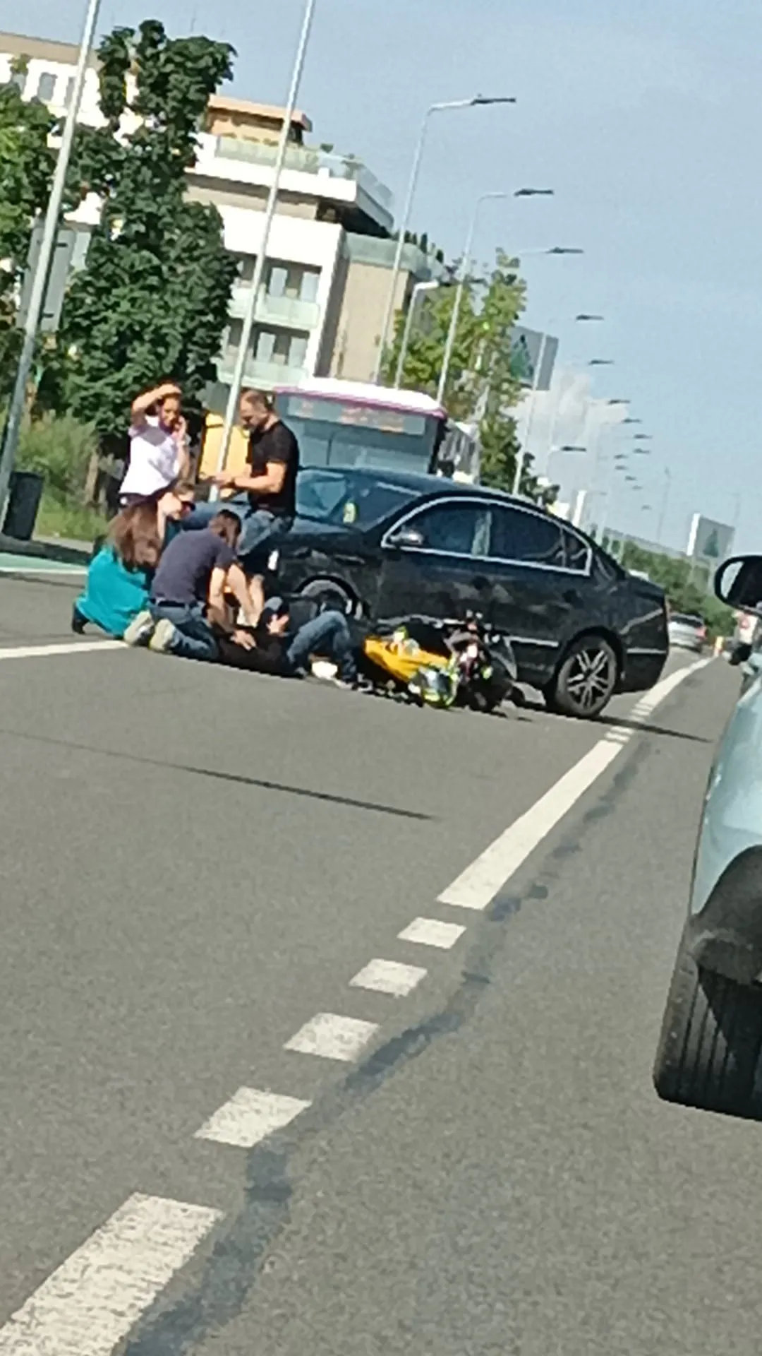 Un accident de circulație s-a produs pe strada Bună Ziua, unde un alt motociclist a fost lovit de un autoturism.