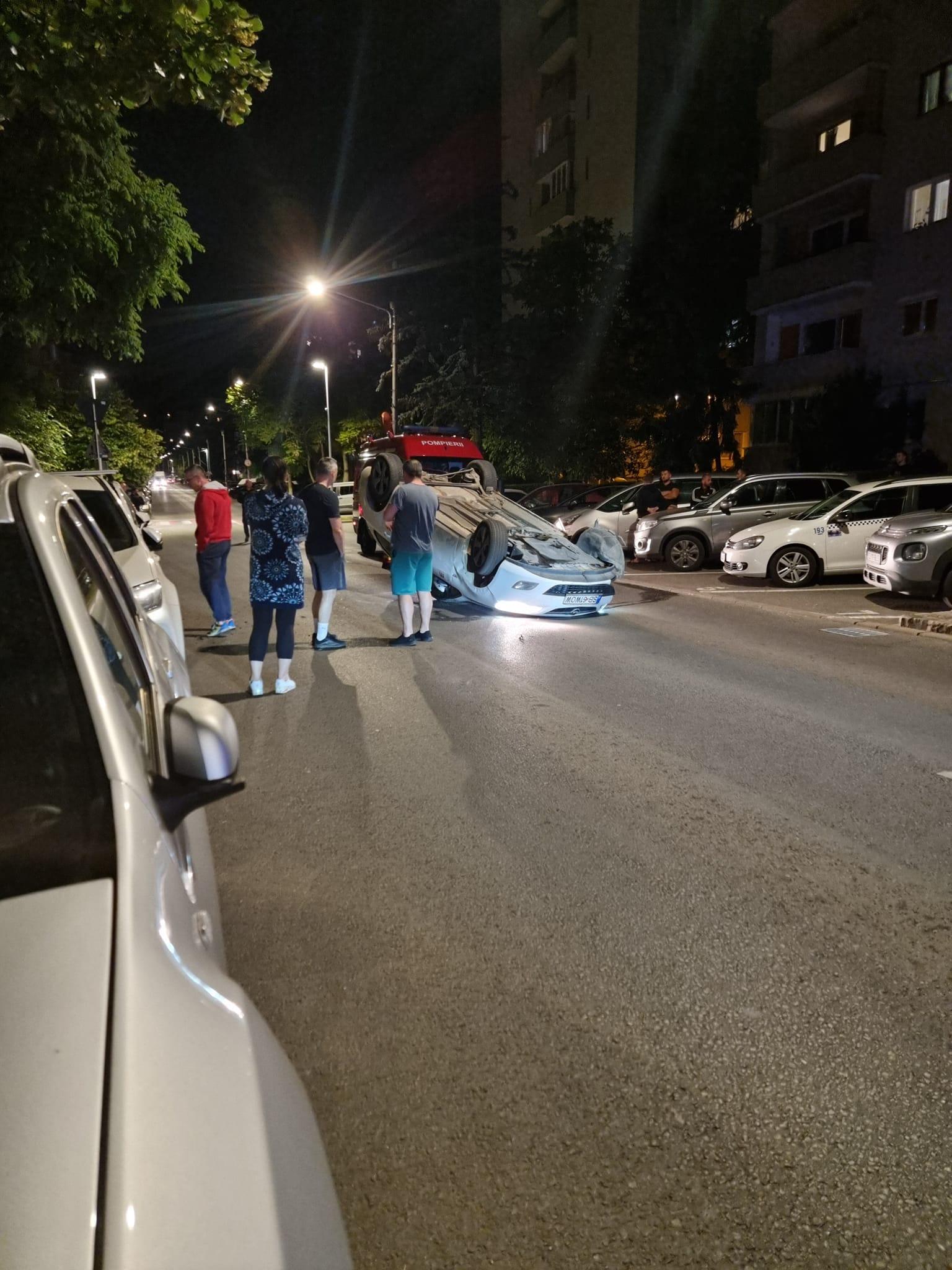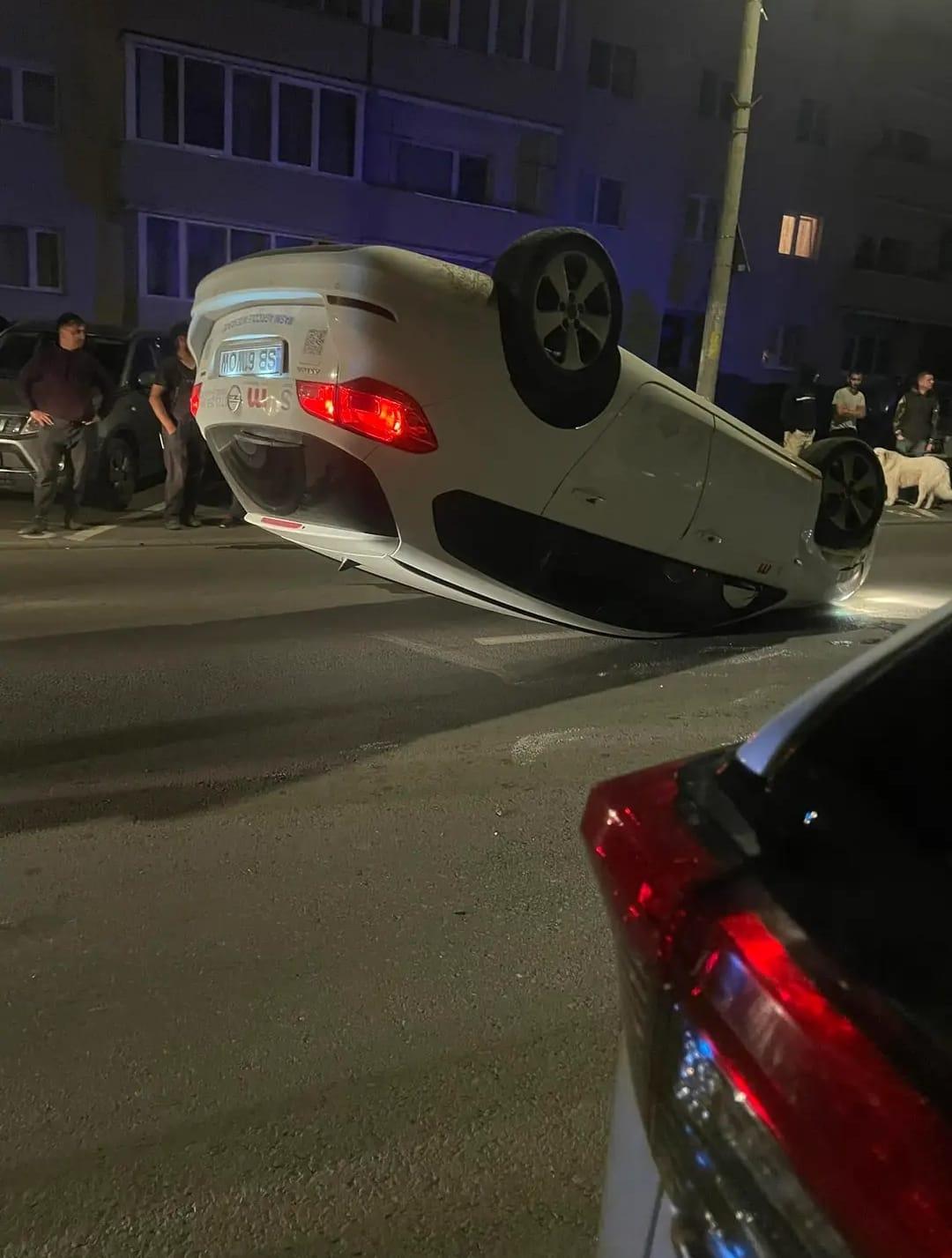 Accident în cartierul clujean Grigorescu Un Opel s-a rasturnat în mijlocul străzii