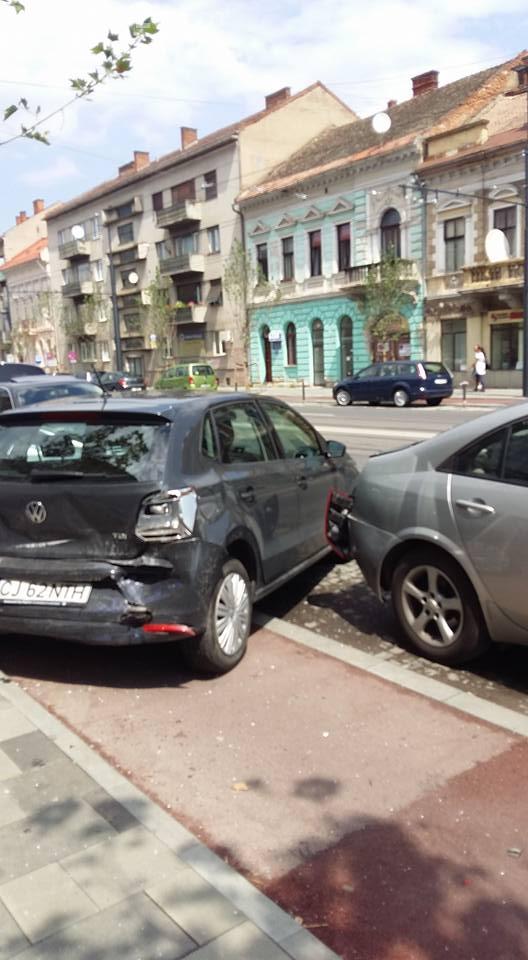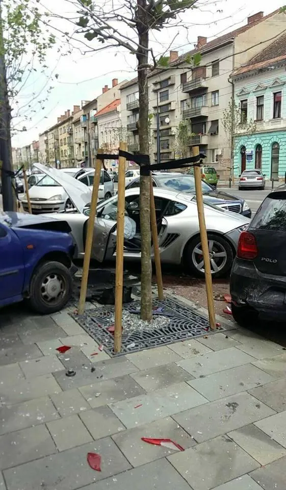 Proprietarul unui Porsche a făcut ravagii în centrul Clujului, lovind mai multe mașini parcate pe strada Horea.