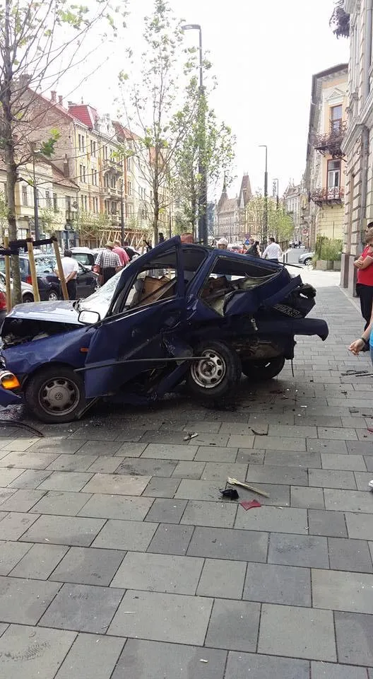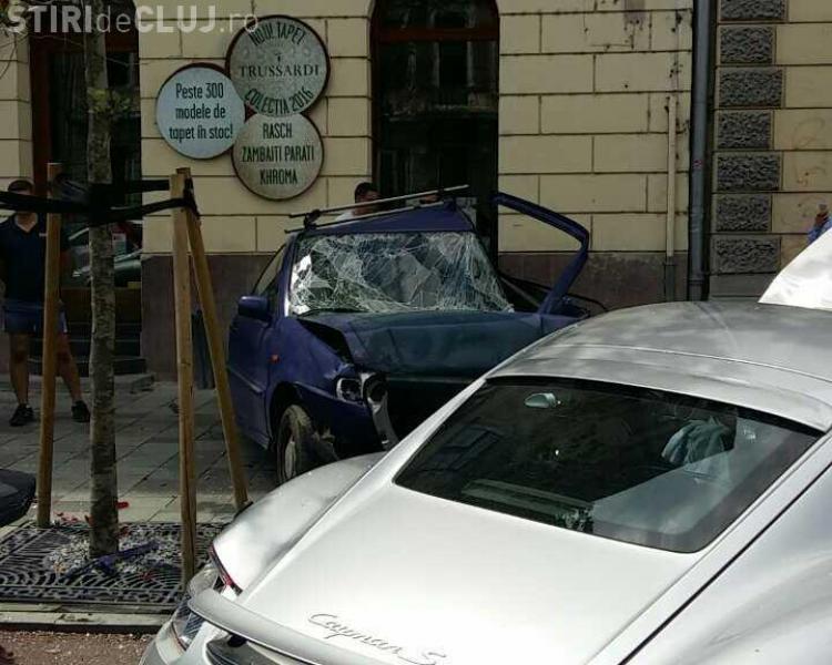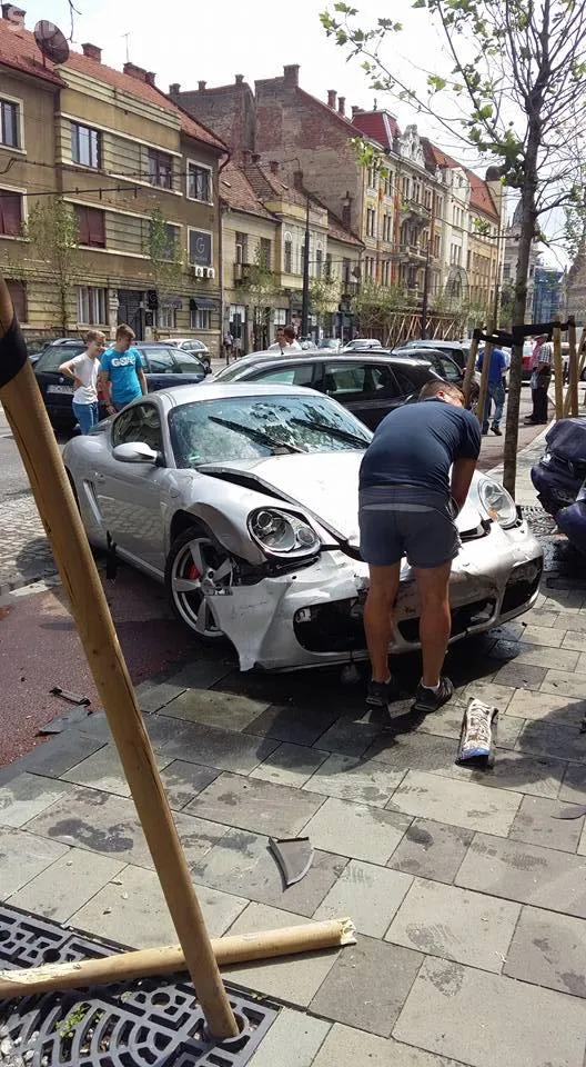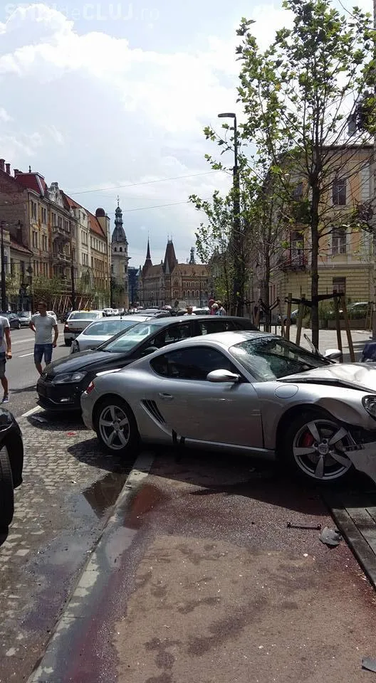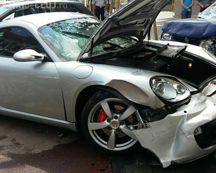 Accident în centrul Clujului! A testat un Porsche și a făcut PRĂPĂD. Reacția șoferului - FOTO