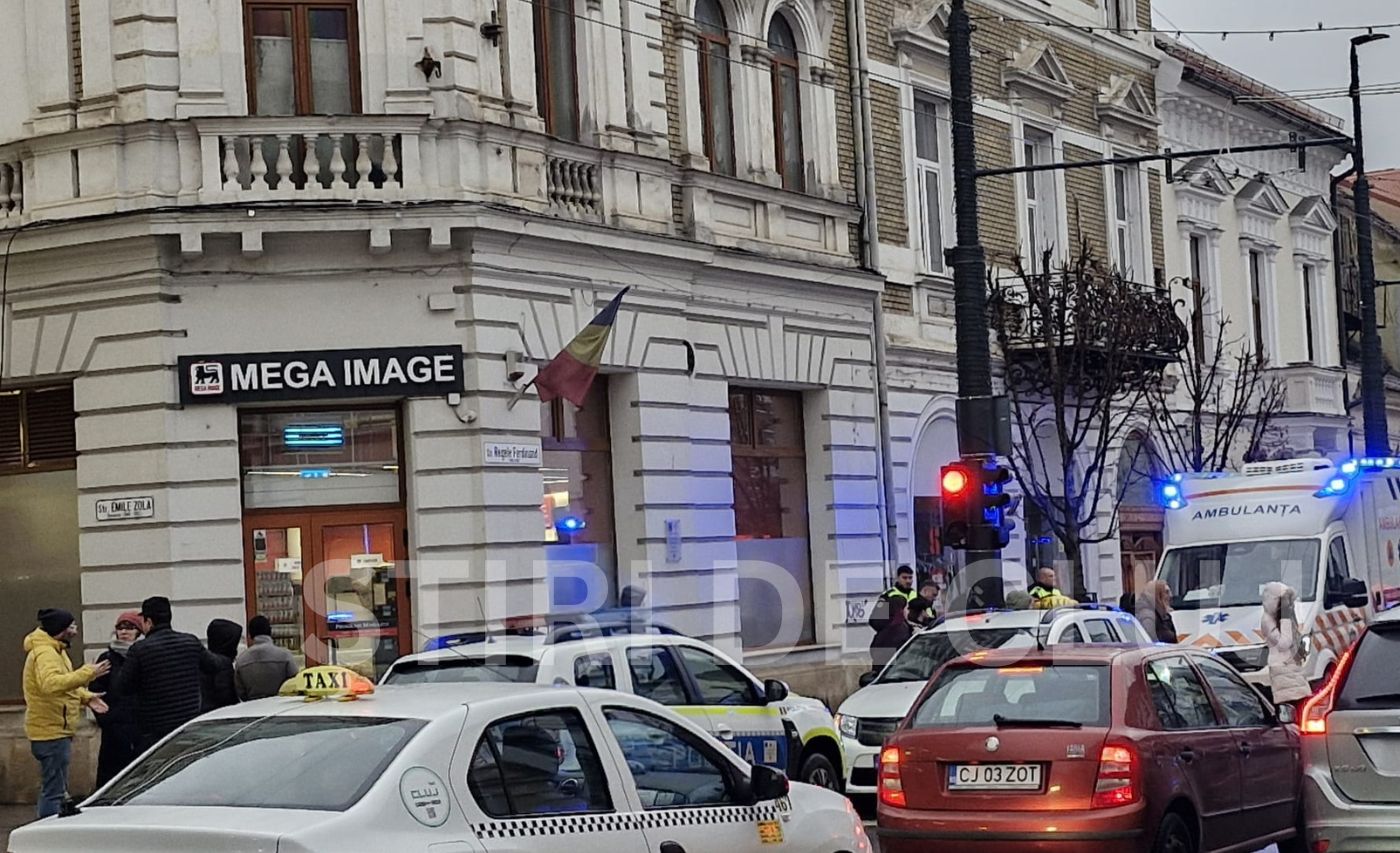 Accident în centrul Clujului, în urmă cu puțin timp! Un bărbat a fost lovit pe trecerea de pietoni de un taxi, după ce a traversat pe roșu FOTO