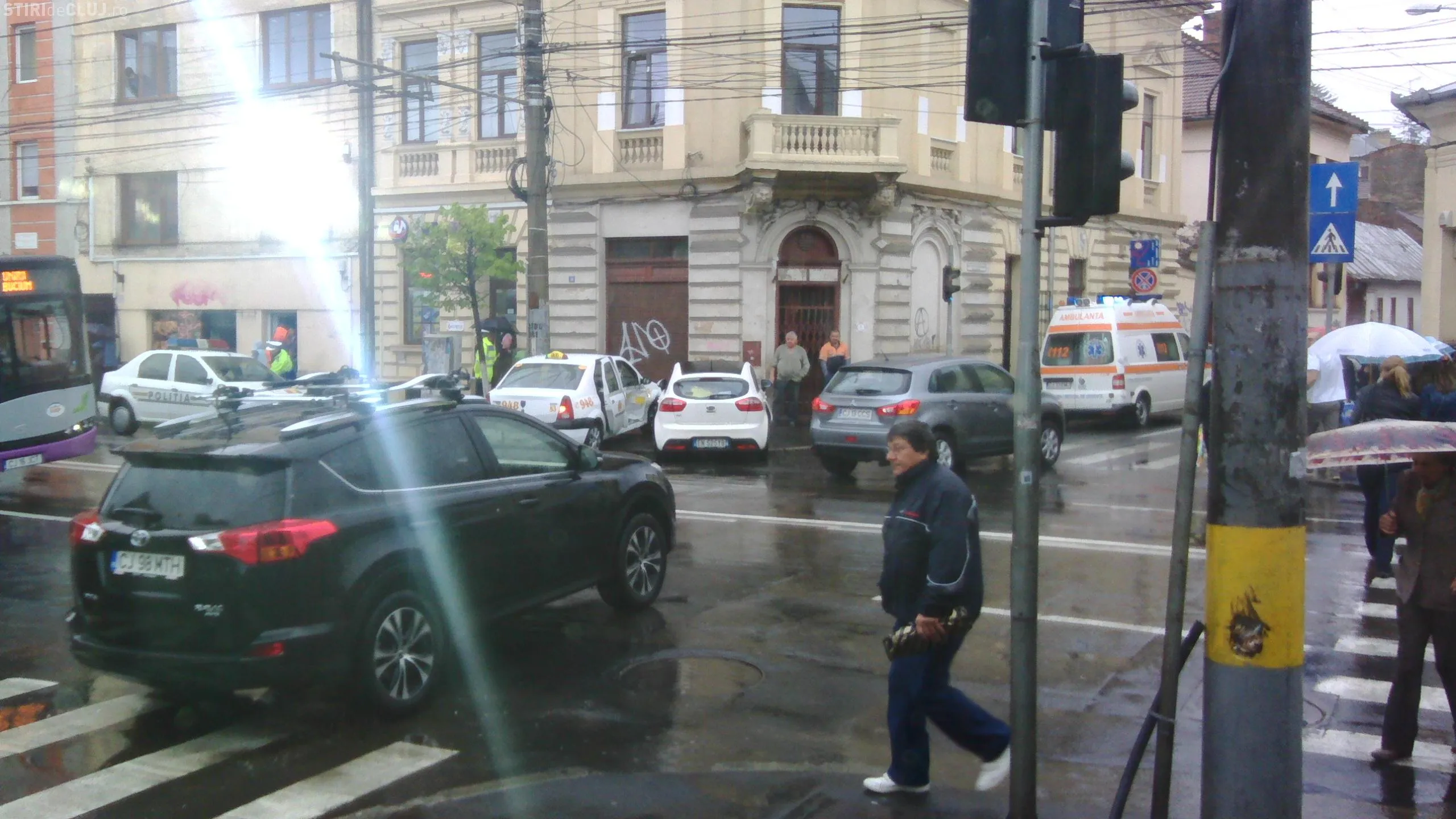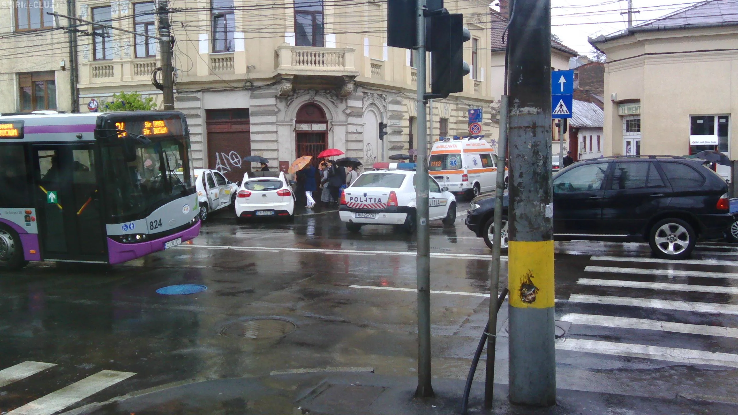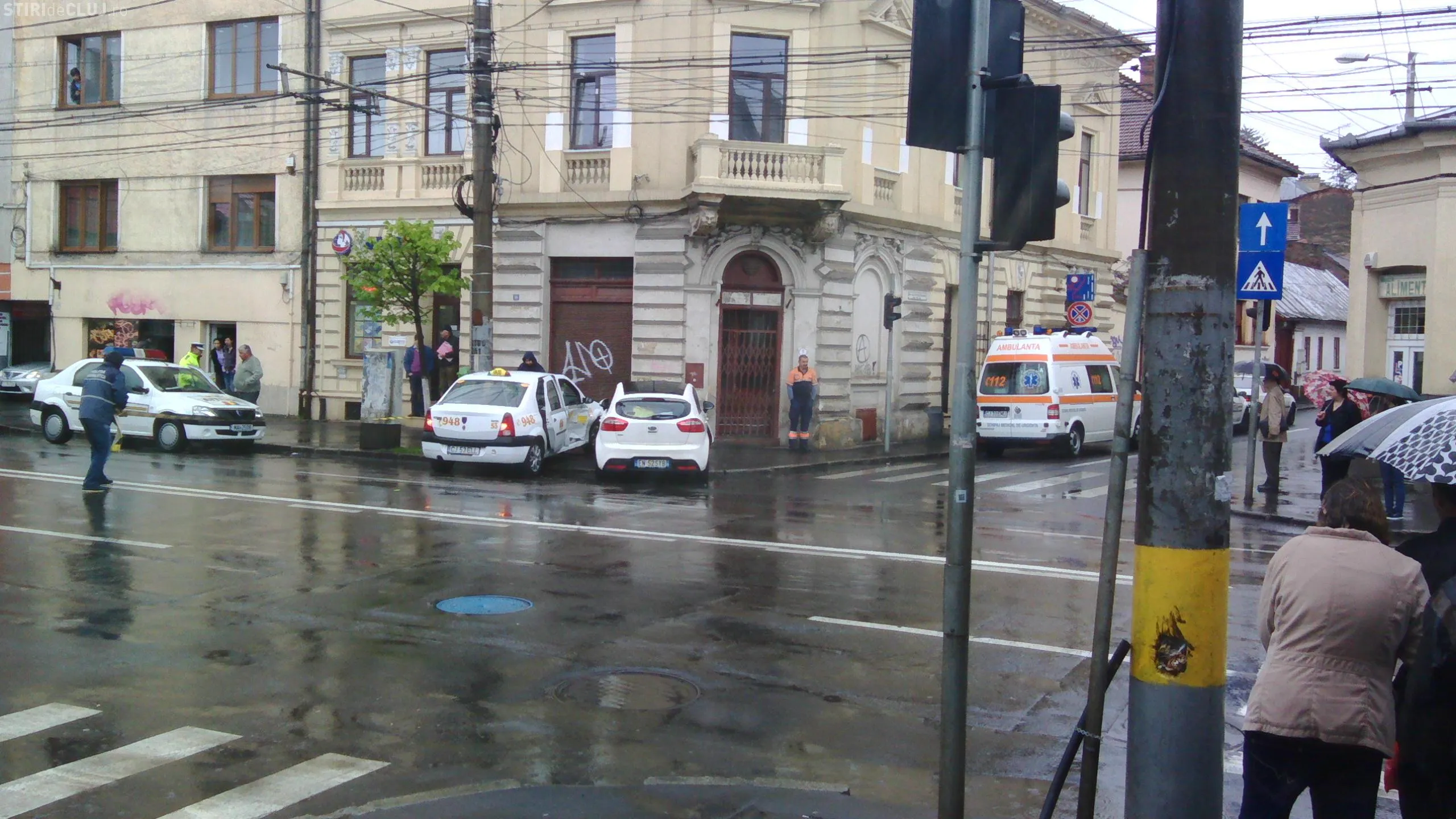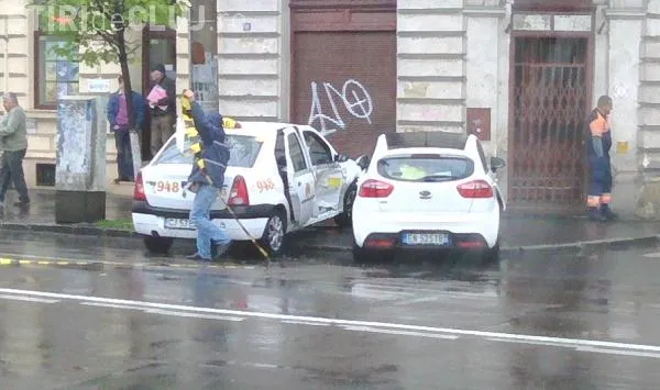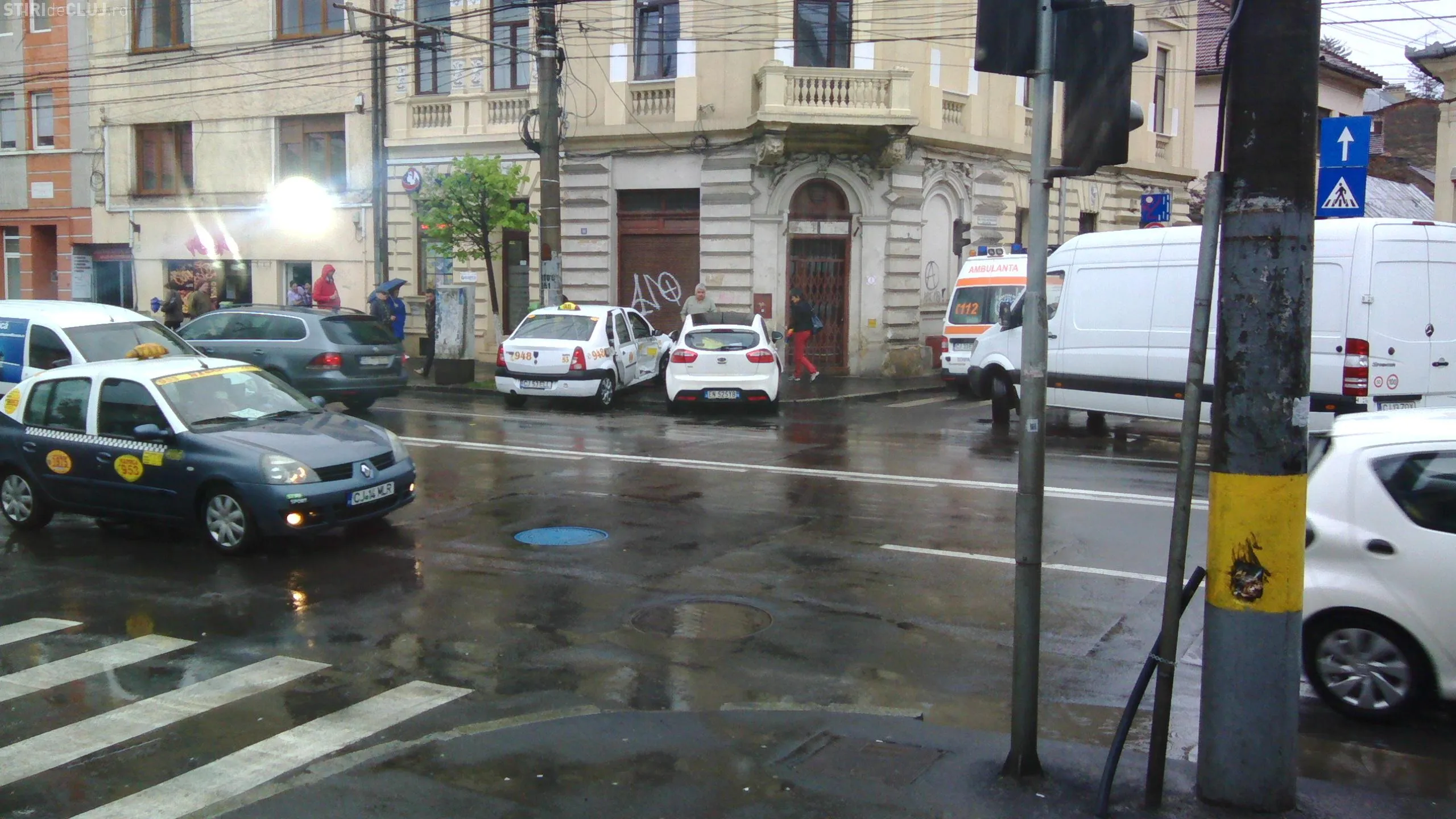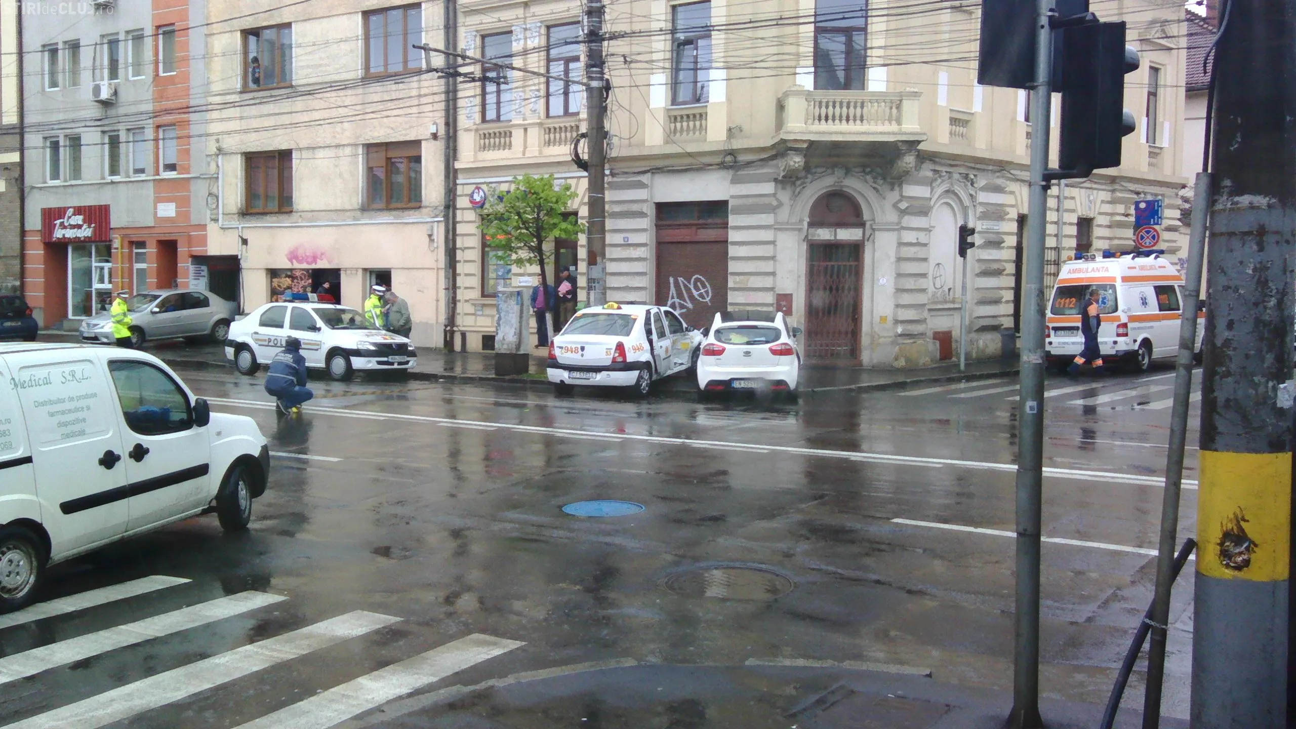 Accident în centrul Clujului, pe Moților! Taximetrist lovit în PLIN - FOTO