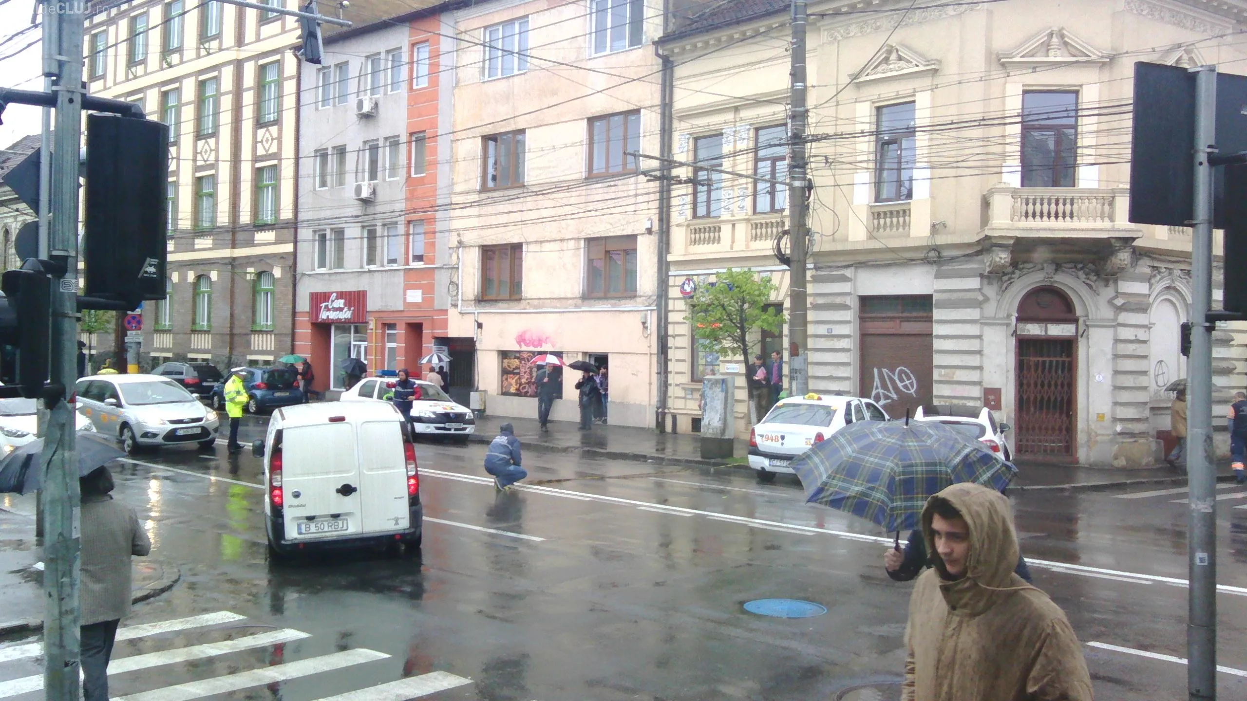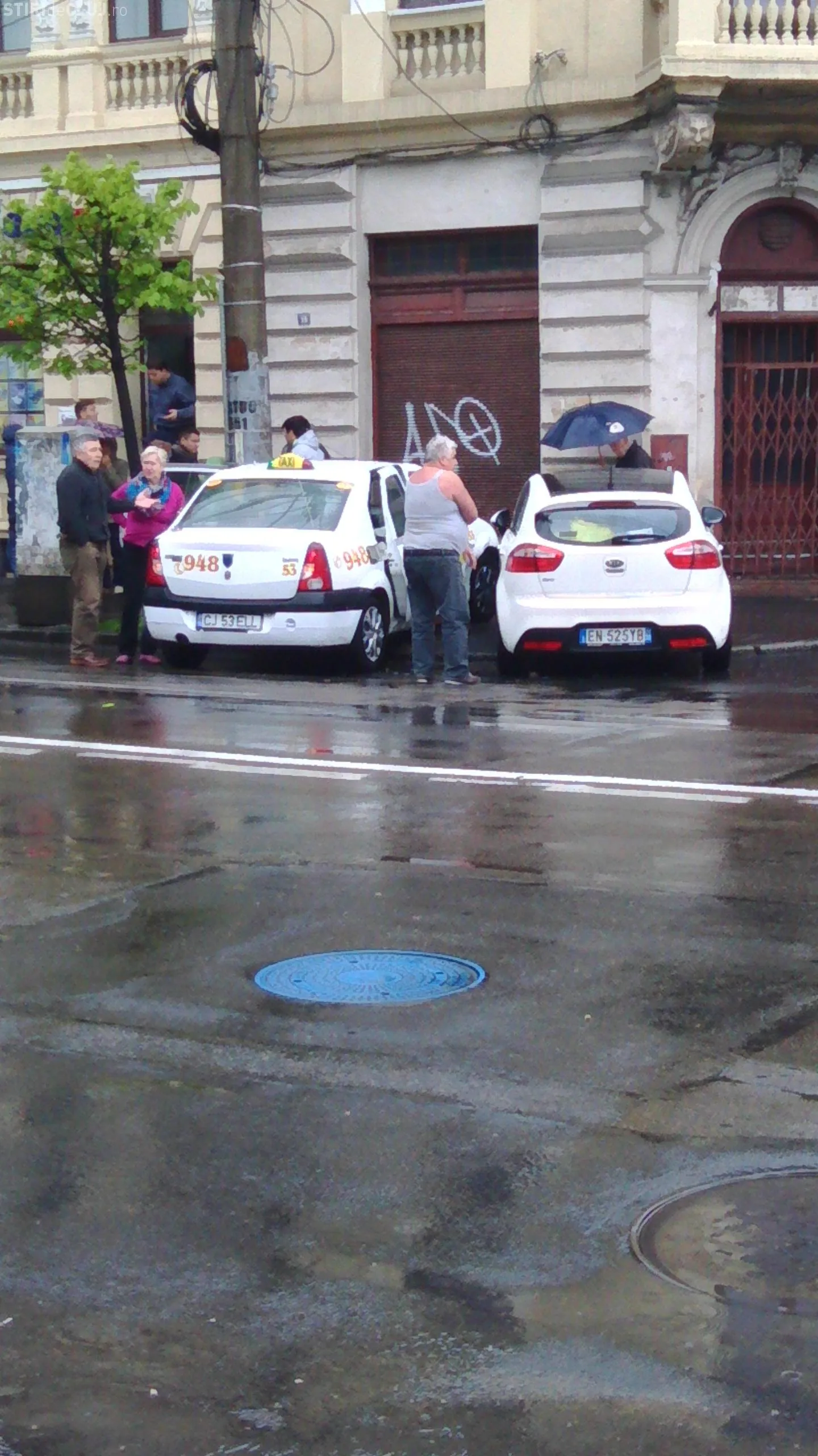 ”Astăzi, 29.04.2015 în jurul orei 11:00 azi dimineata în CLUJ NAPOCA, intersecția strazilor Motilor cu Mihai Eminescu a avut loc un accident urat, din fericire fără victime, dar cu o sperietura mare pentru cele doua doamne din taxi ce au fost cred ca putin sifonate, un sofer cu numere de Italia venea de pe Motilor, cred ca venea din Italia, fiind si putin obosit la volan, izbind violent într-un stâlp taxiul ce circula regulamentar ieșind din strada Eminescu, spre strada Clinicilor, s-a lăsat cu portiere îndoite ale taxiului si ale celuilalt sofer și cred că o sperietura urata pentru cele doua doamne din taxi.