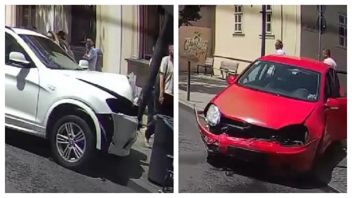 O cameră de bord amplasată pe mașina unui participant la trafic a surspins momentele de după întâmplarea accidentului. Mai multe bucăți din mașini se pot observa pe drum, precum și o bicicletă căzută lână BMW-ul de culoare albă.