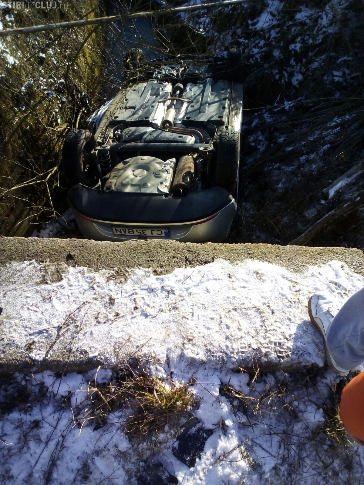 Accident în Cluj! Elicopterul SMURD a fost trimis unde era mașina răsturnată - VIDEO