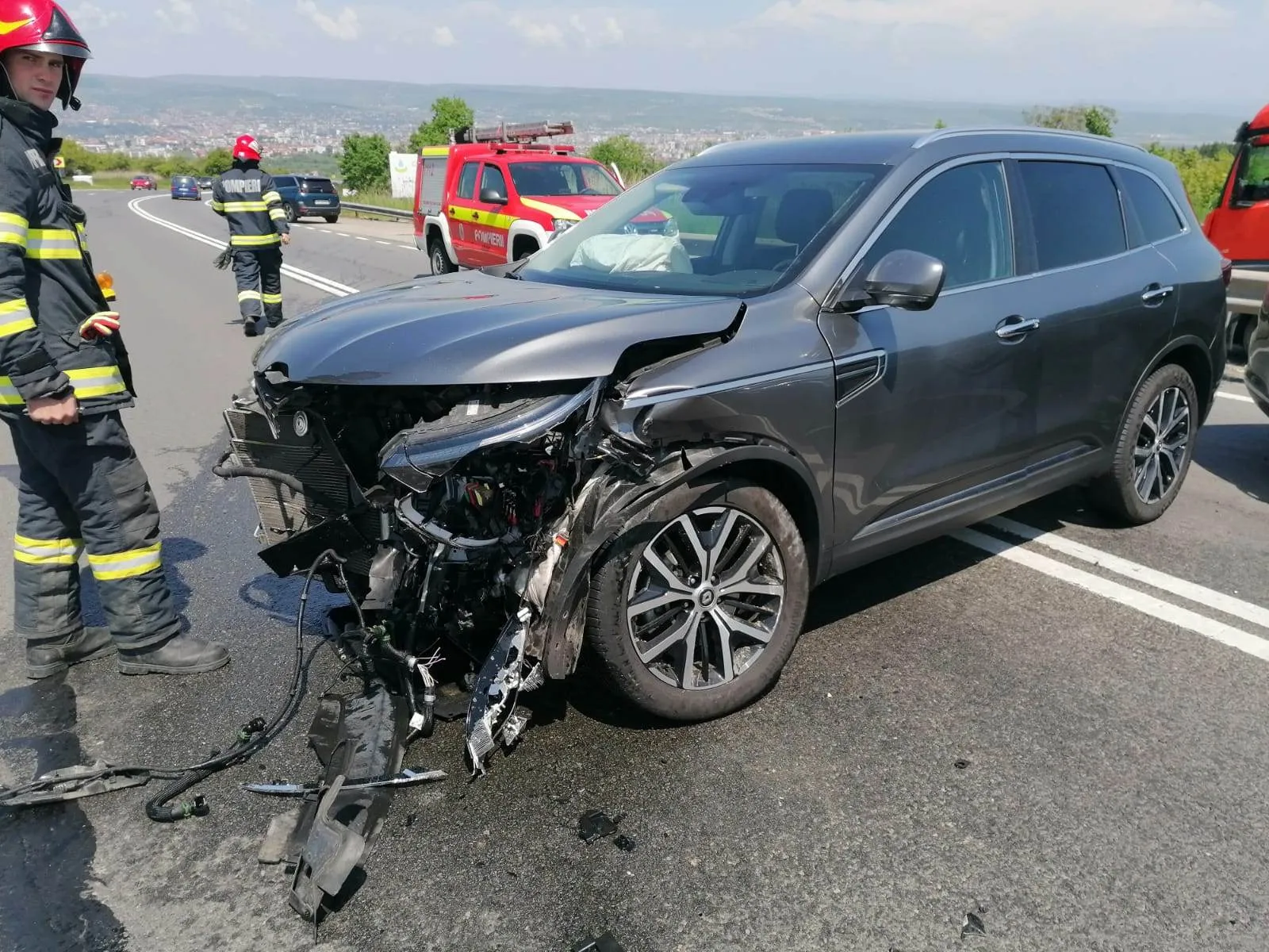 Accident în Cluj, la coborârea dinspre Feleacu! Două mașini făcute praf după o tamponare - FOTO