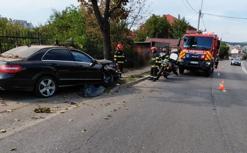 Accident în Cluj-Napoca! A intrat cu mașina într-un copac. O femeie a avut nevoie de îngrijiri medicale