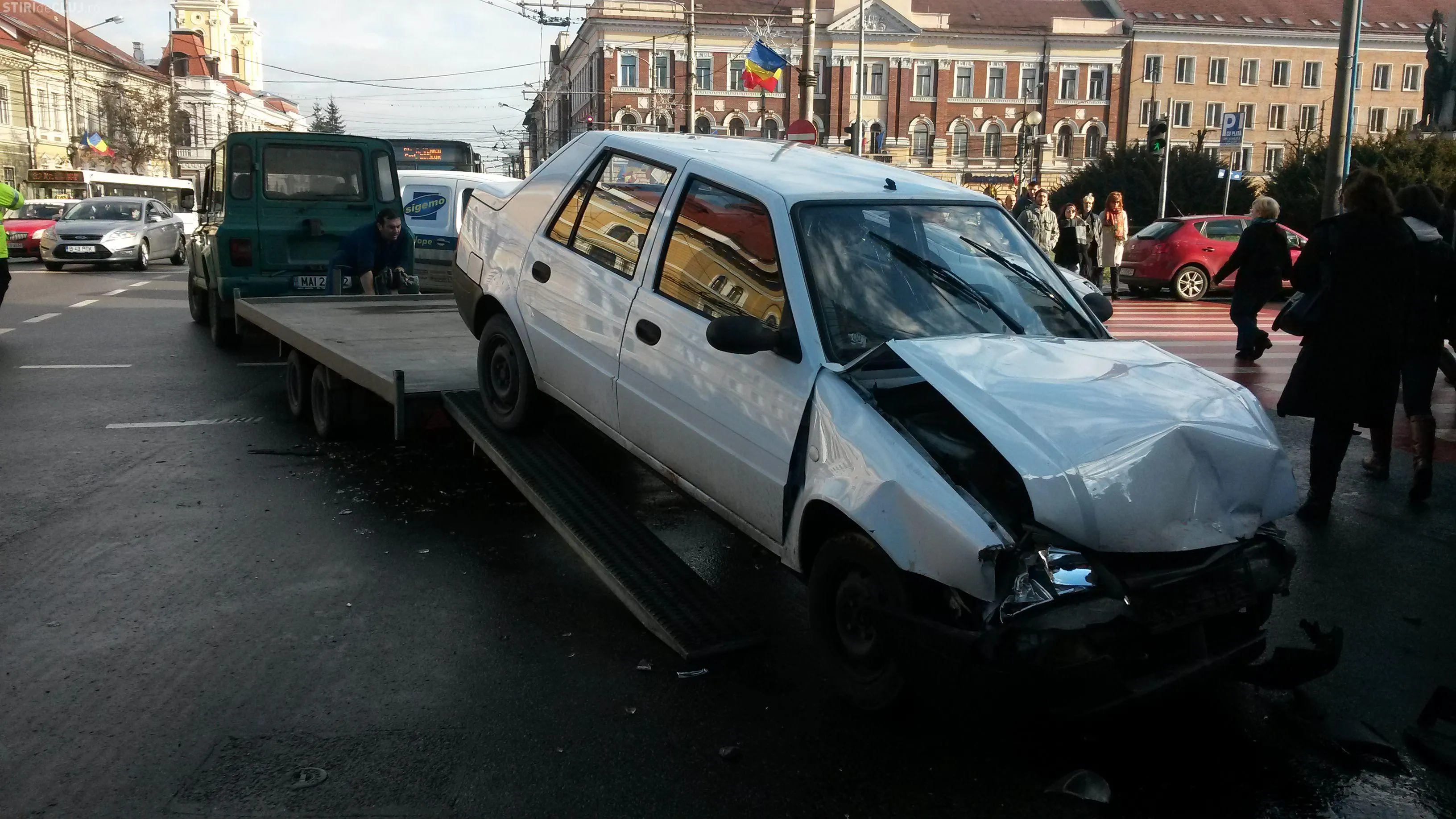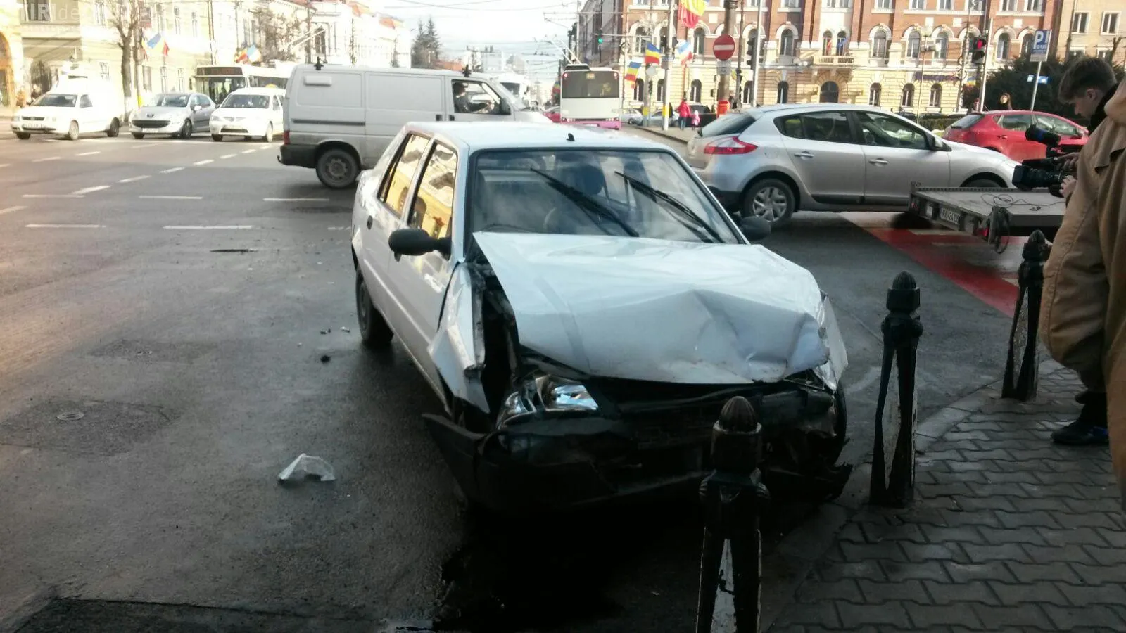 Un accident rutier a avut loc, miercuri, în jurul prânzului, în fața clădirii Prefecturii, din centrul municipiului Cluj-Napoca.