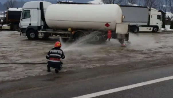 În evenimentul rutier au fost implicate o mașină și o cisternă cu gaz, traficul în zonă fiind îngreunat.