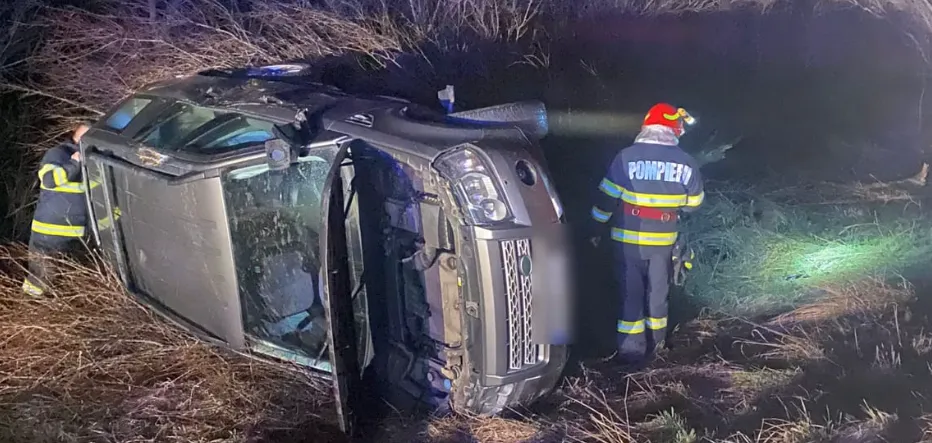 O mașină s-a răsturnat în afara drumului, trei persoane având nevoie de ajutor medical. La fața locului au ajuns de urgență pompierii și o ambulanță, o femeie, un bărbat și o fetiță de 10 fiind consultați de paramedici.