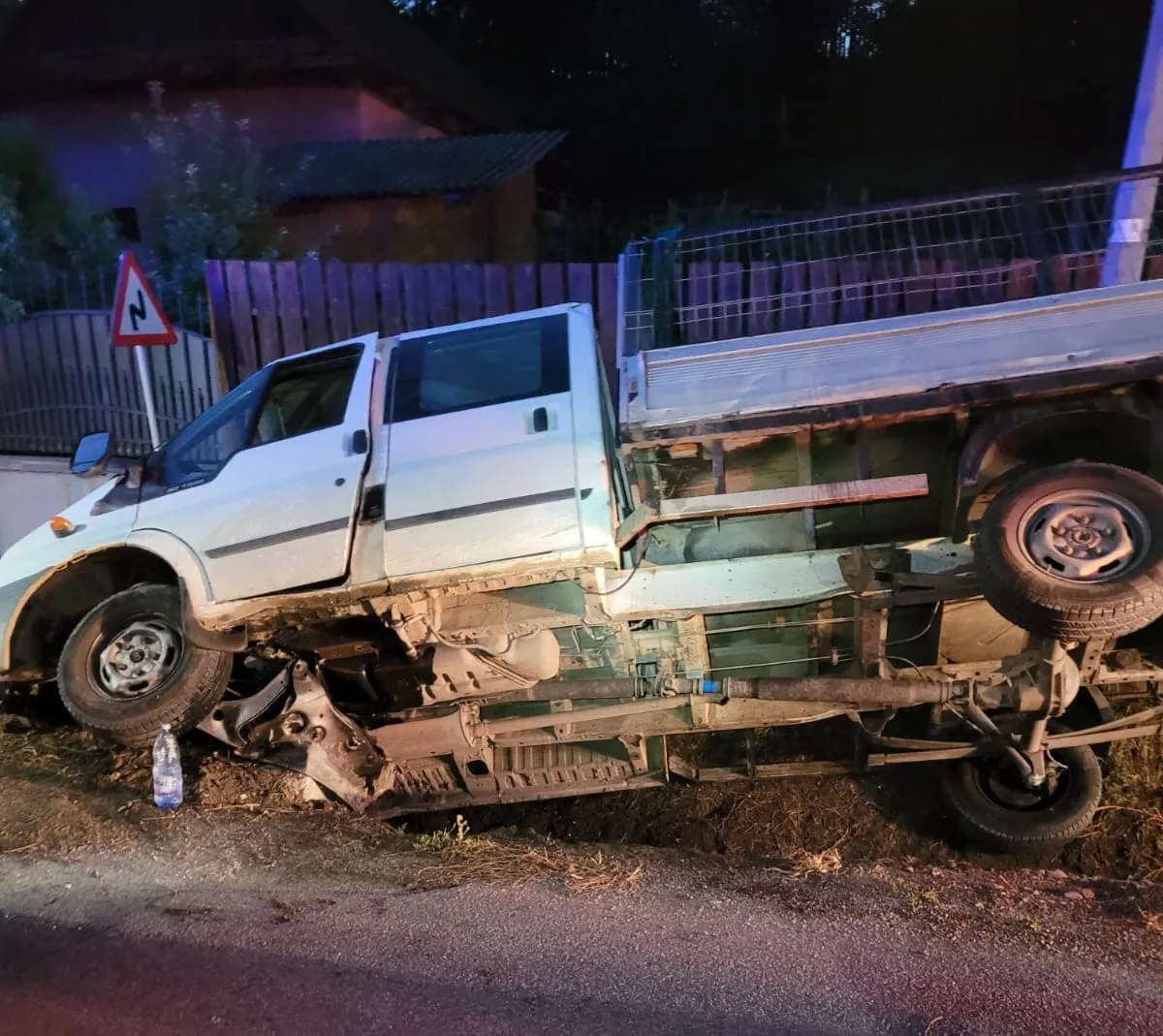 Accident în Cluj. Un bărbat a fost transportat la spital după ce a ajuns în șanț cu autoutilitara