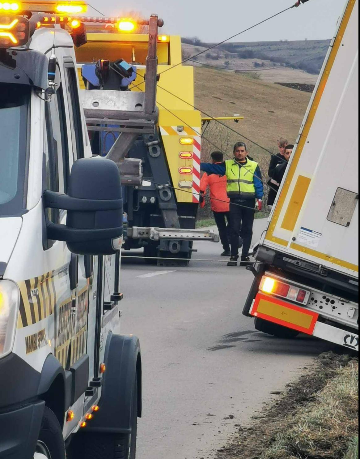 Vehiculul de mare tonaj a fost la un pas de răsturnare completă, însă din fericire, nu s-au înregistrat victime.