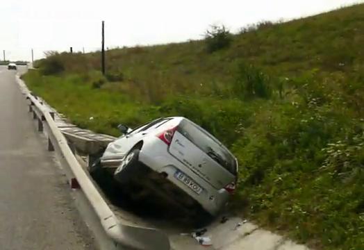Accident in comuna Livada. Un sofer a "aterizat" cu masina in santul de beton de pe DN 1C - VIDEO