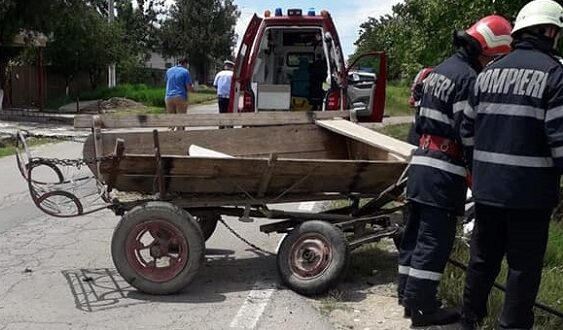 Accident în Dezmir, între o mașină și o căruță! Un copilaș de 4 ani a fost rănit în urma impactului. Intervin pompierii ISU Cluj