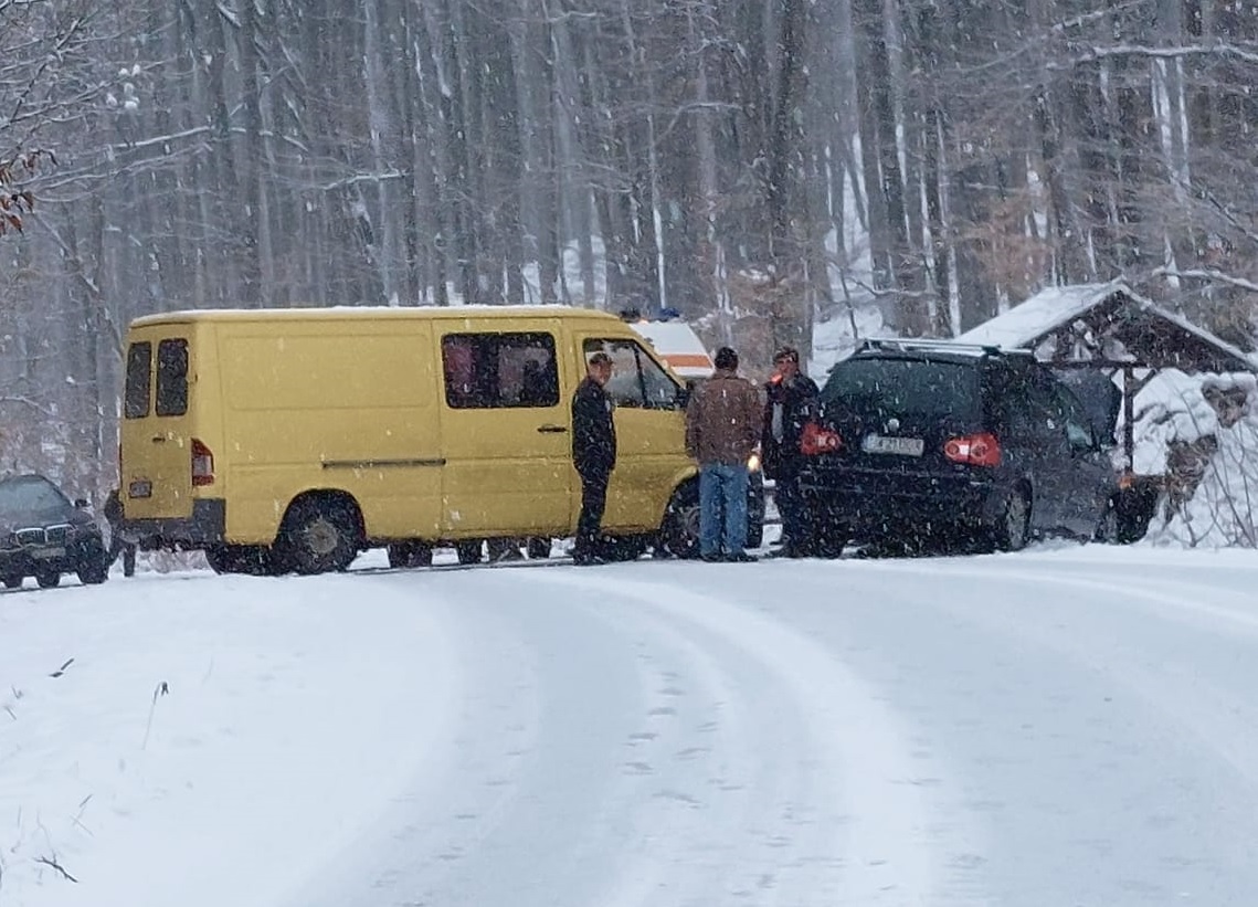 Pe drumul acoperit cu zăpadă s-au ciocnit un autoturism și o autoutilitară. Șoferii au sărit să acuze Primăria și firmei de curățarea drumurilor că nu și-au făcut treaba.