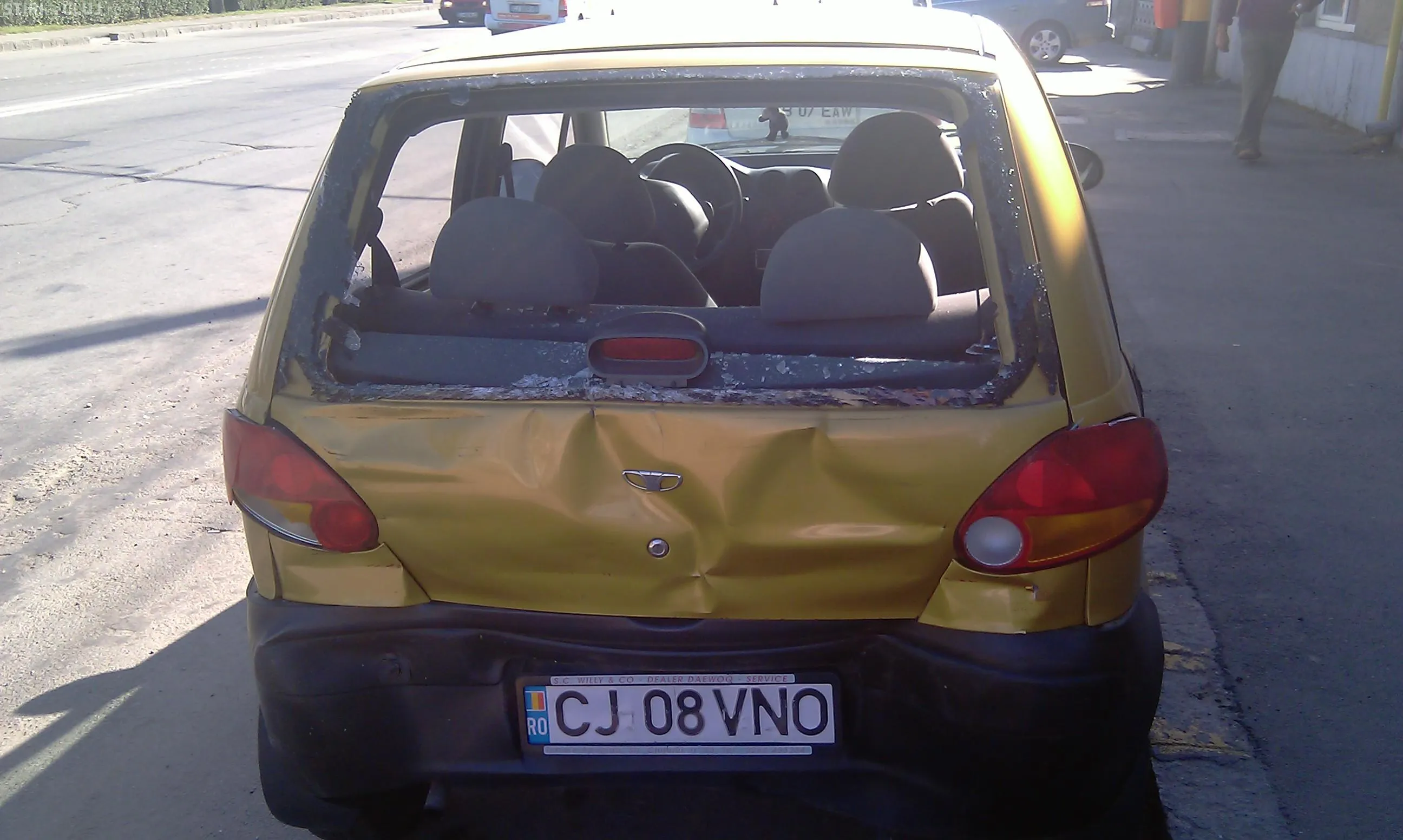 Doua persoane au fost ranite intr-un accident de circulatie petrecut in jurul orei 9.30 in fata Aeroportului International Cluj. Un camion de transport marfa, condus de un sofer baut, a intrat intr-un Matiz, oprit la trecerea de pietoni.