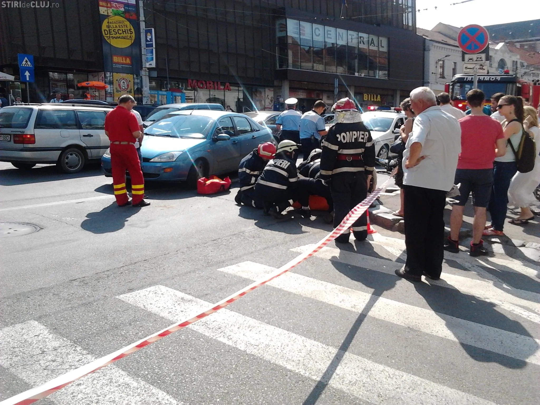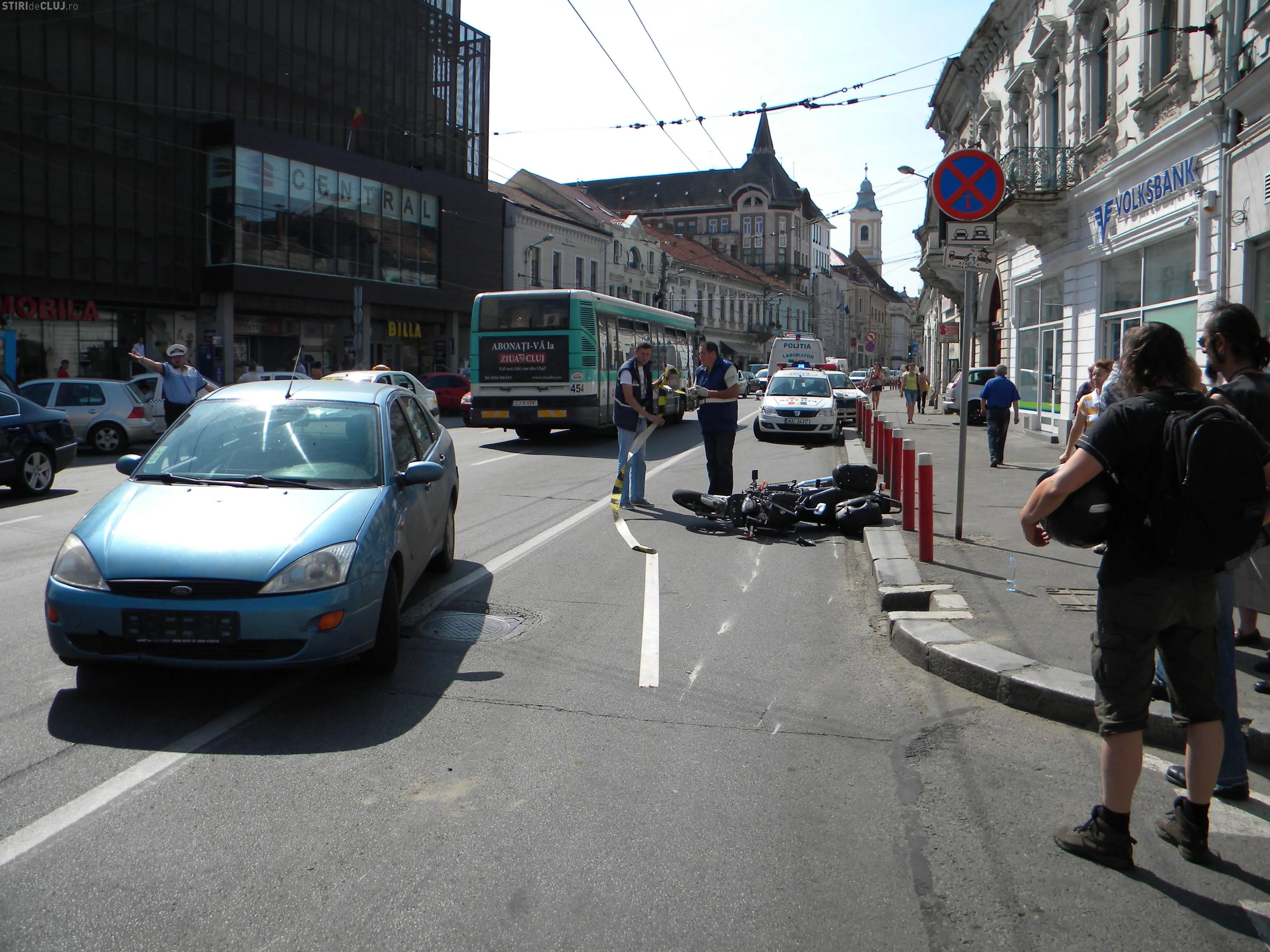 Accident în față la Central. Motociclist lovit de un autoturism. A fost acroșat și un pieton - FOTO și VIDEO