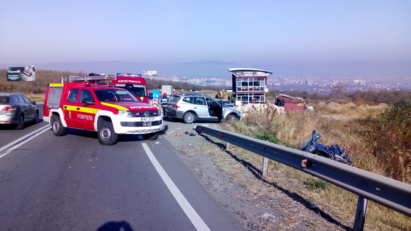 O autospecială și un echipaj SMURD au intervenit ca urmare a unui accident rutier petrecut în apropiere de localitatea Feleacu, în jurul orei 10.40. Pompierii sosiți la locul evenimentului au găsit o motocicletă și pe conducătorul acesteia proiectați peste parapet, în afara părții carosabile.