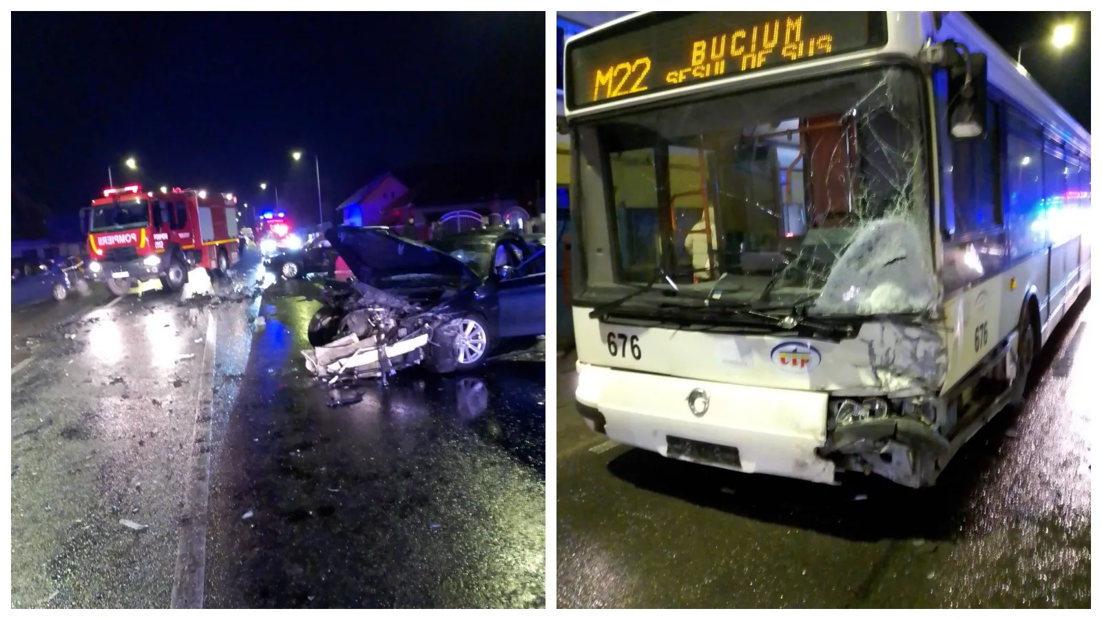 De asemenea, în accident a fost implicat parțial și un autobuz.