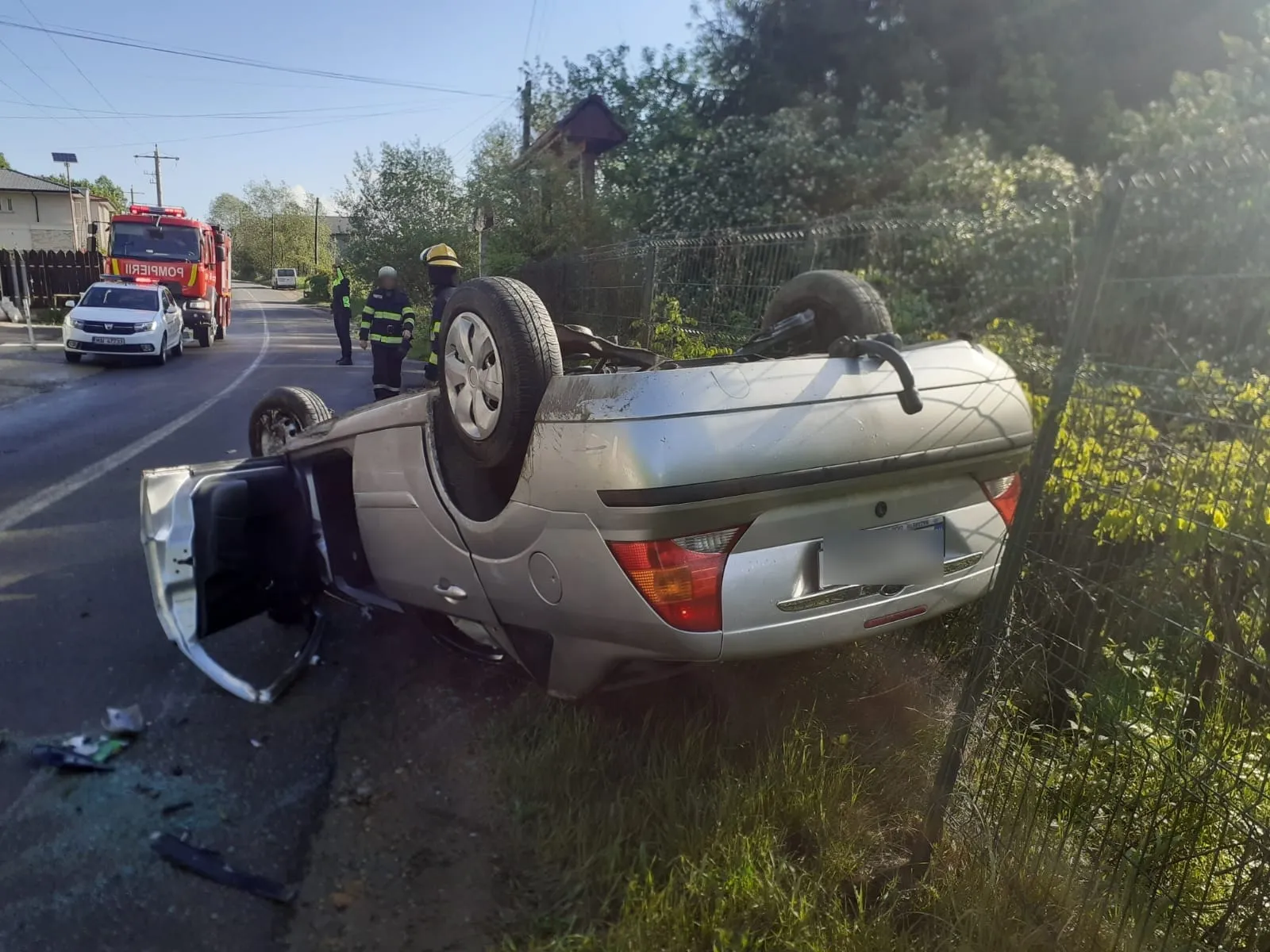 La fața locului au găsit două autoturisme avariate, dintre care unul răsturnat pe plafon în afara părții carosabile. Ocupanții erau ieșiți din acestea și au fost consultați de către echipajul SMURD, fără a fi transportați la spital.