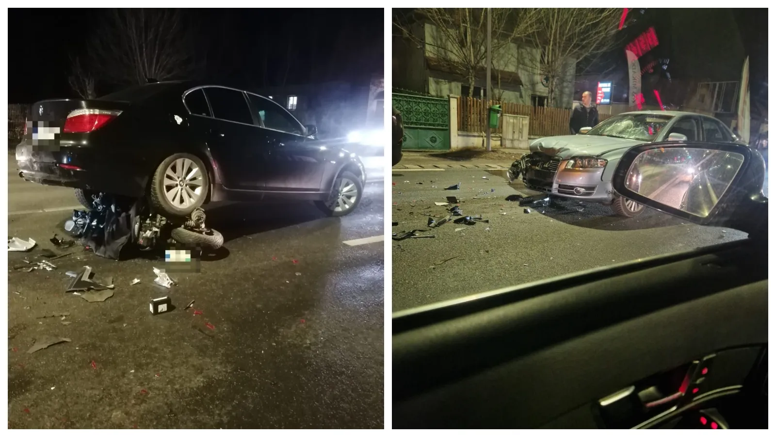 Accident în Florești, în zona viitorului Spital de urgență. S-a urcat cu mașina pe o motocicletă - FOTO